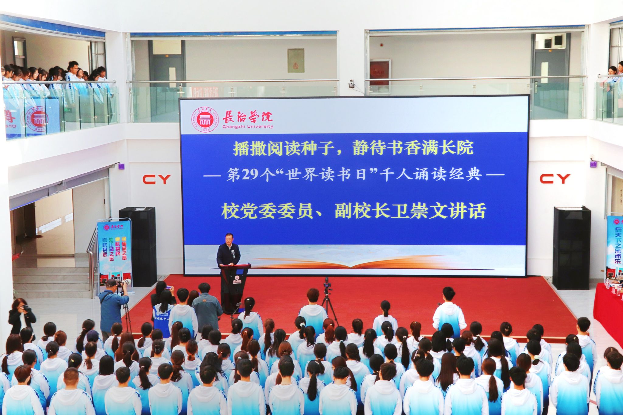 4月23日是世界读书日,由beat365党委宣传部、校团委和图书馆共同主办的第29个“世界读书日”千人诵读经典活动在南校区新建三号教学楼一楼报告厅举办。校党委委员、副校长卫崇文出席。党委宣传部、校团委、图书馆等相关部门及图书馆全体人员参加活动。