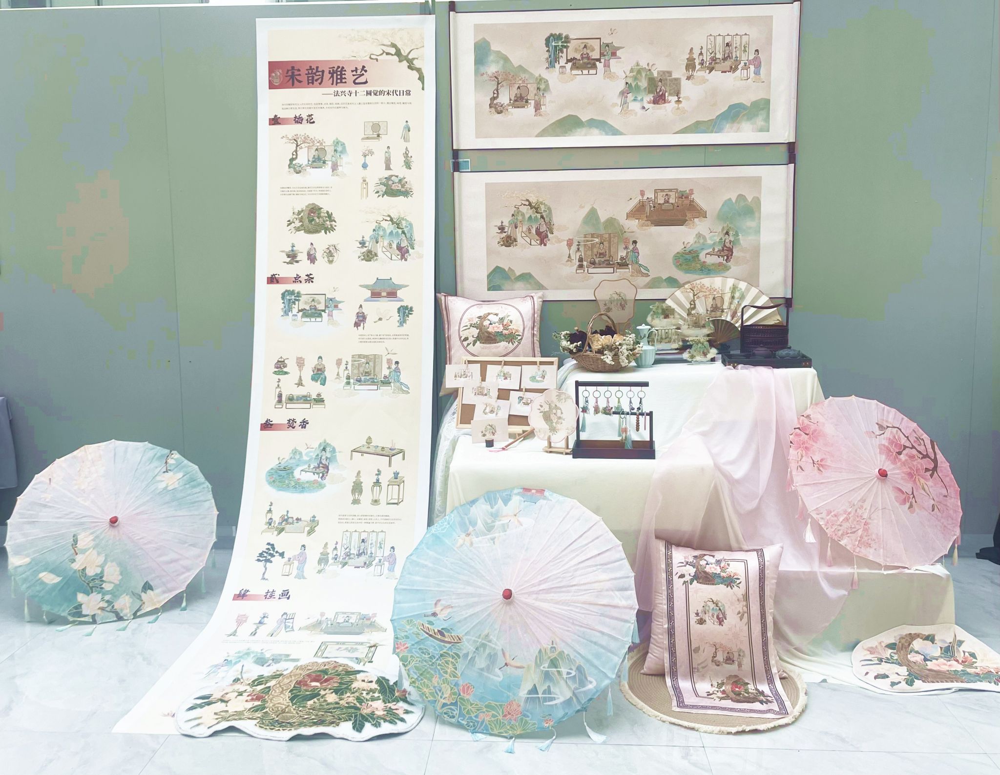 本次毕业设计展示推介会展品丰富多样,展出包装设计、插画设计、文创产品设计、图形信息化设计、数字媒体设计、环境艺术设计、IP视觉形象设计、陶艺、装置艺术等300余件展品,涵盖视觉传达设计、文化创意产业、数字媒体与信息化、环境艺术等多种类别。毕业生从作品设计理念、材料技法、应用场景等方面向参会企业进行了现场推介,帮助企业更直观地了解自己,从而更好助力毕业生好就业、就好业。