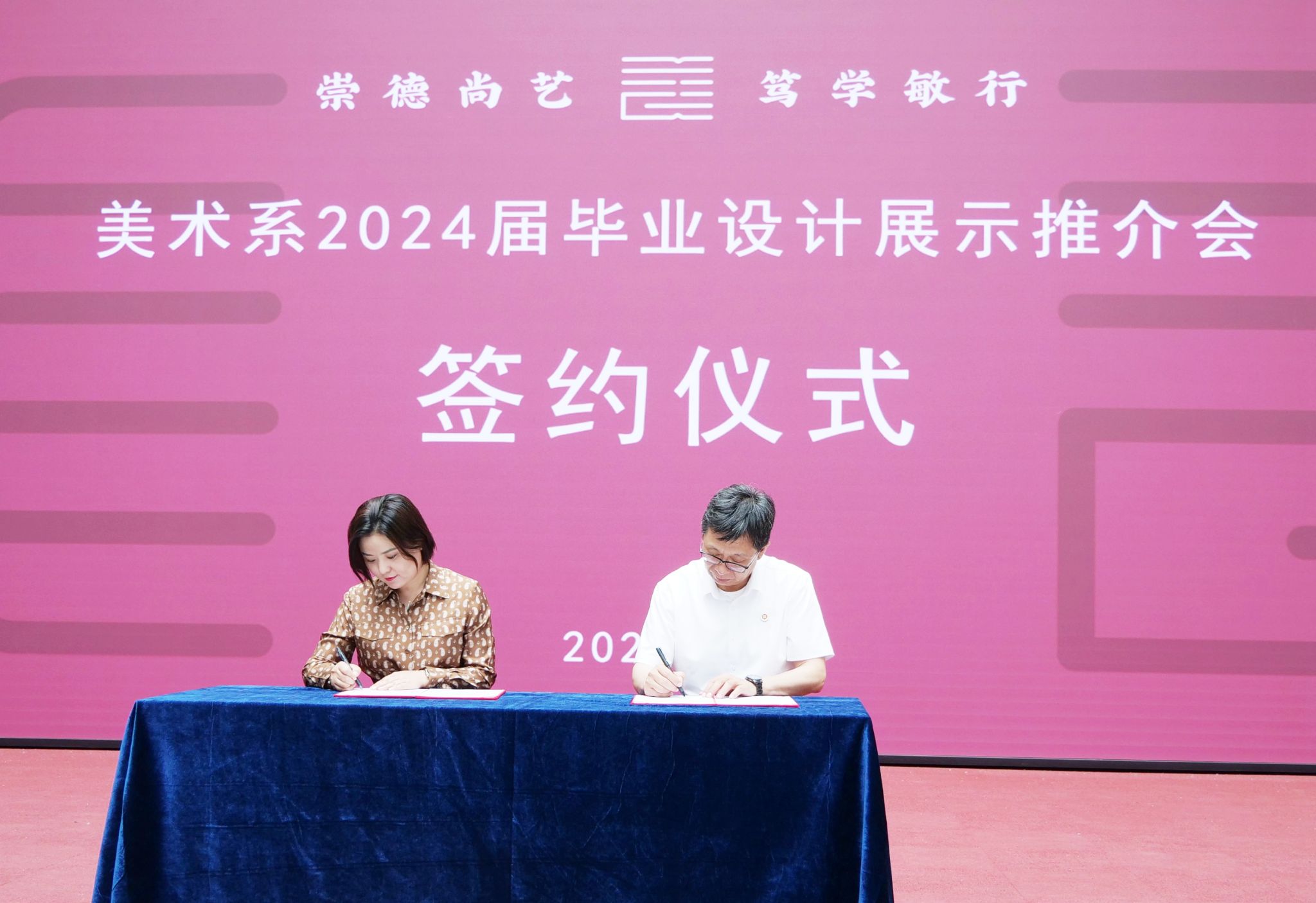 推介会上,beat365美术系主任苗勇忠与锄禾文化、长治名优产品展销馆、长治峡谷山珍食品有限公司代表签订了合作协议。