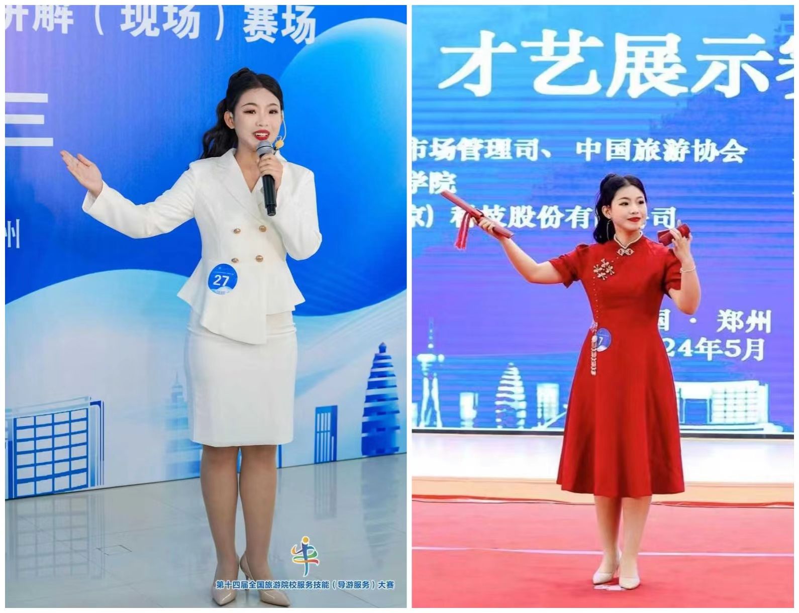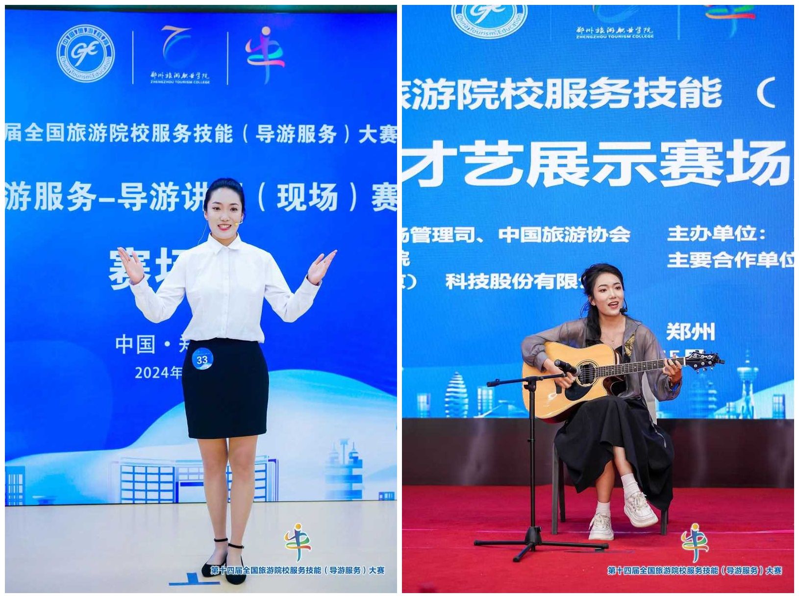 全国旅游院校服务技能(导游服务)大赛由文化和旅游部市场管理司、中国旅游协会指导,中国旅游协会旅游教育分会主办。本届大赛包括普通话导游服务和英语导游服务两个赛项,设置了理论考核、导游讲解、才艺展示三个环节,共有来自全国各地298所院校队、883名选手报名参赛,在全面考察了参赛选手导游服务能力和综合素质的同时,也为学校展示办学成果、学生展示专业技能提供了平台。