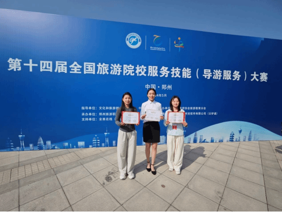 5月23日到26日,第十四届全国旅游院校服务技能(导游服务)大赛在郑州旅游职业学院举行。经过激烈角逐,beat365历史与旅游管理系学生张思璇获高等院校组英语导游服务一等奖,暴培楠获普通话导游服务二等奖,金生玉获普通话导游服务三等奖。