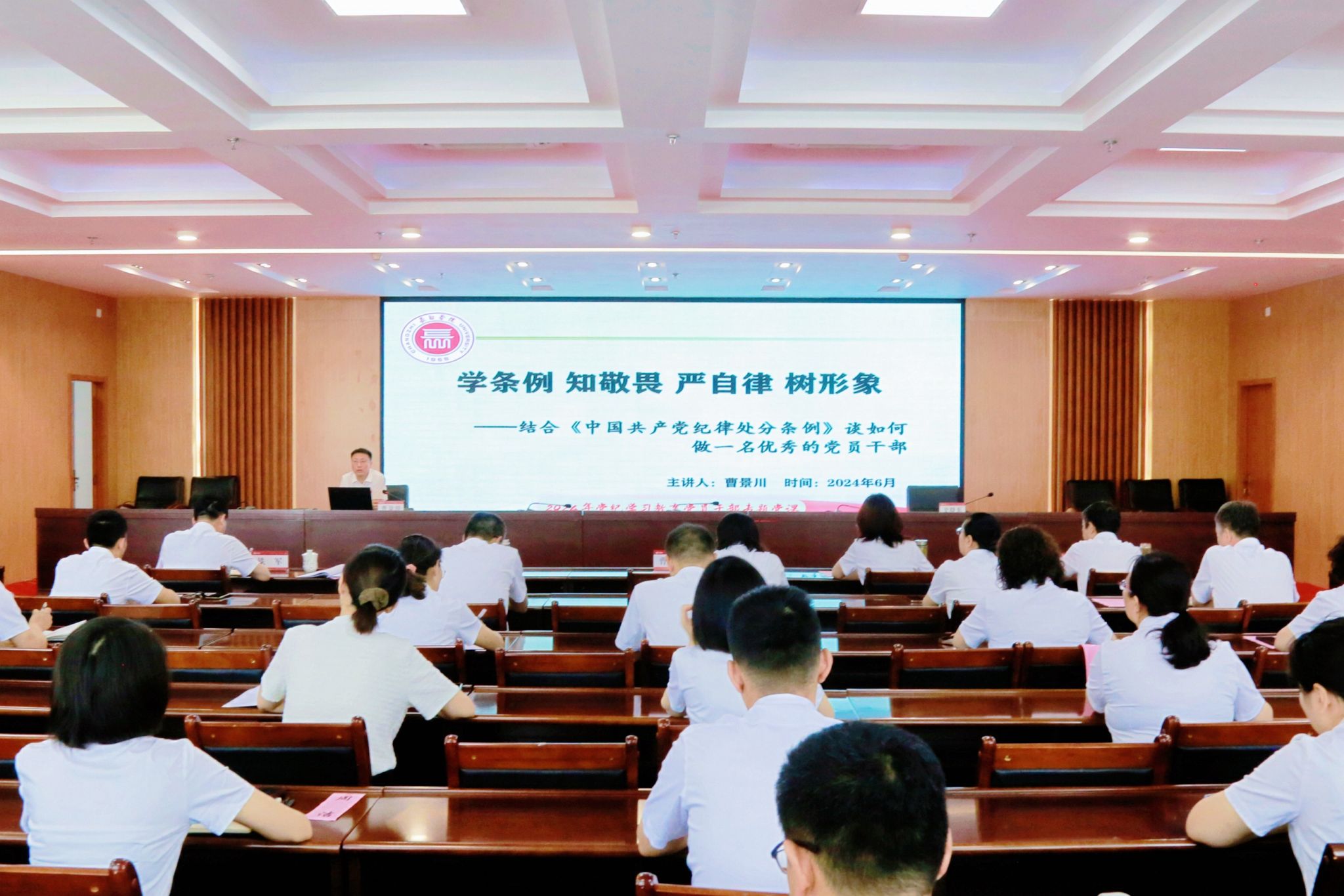为深入学习贯彻习近平总书记关于党纪学习教育的重要讲话和重要指示精神,推动党纪学习教育走深走实,引导党员干部学纪、知纪、明纪、守纪,按照党纪学习教育工作安排,6月26日上午,校党委书记曹景川以《学条例 知敬畏 严自律 树形象——结合<中国共产党纪律处分条例>谈如何做一名优秀的党员干部》为题,讲授党纪学习教育专题党课。校党委班子成员、二级党组织书记、党务部门全体人员参会。党委副书记史晓东主持会议。