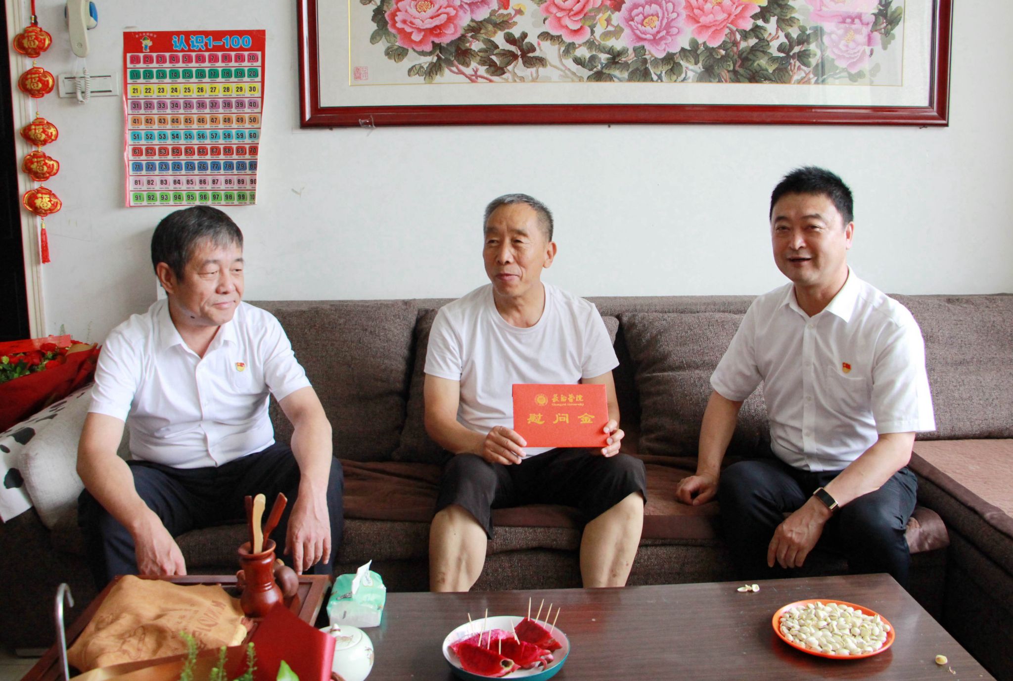 在中国共产党成立103周年之际,7月1日上午,校领导曹景川、史晓东、焦雨、卫崇文、铁军、王志军、武月明走访慰问老党员和困难党员代表,向他们转达校党委的亲切关怀,致以“七一”节日的诚挚问候。