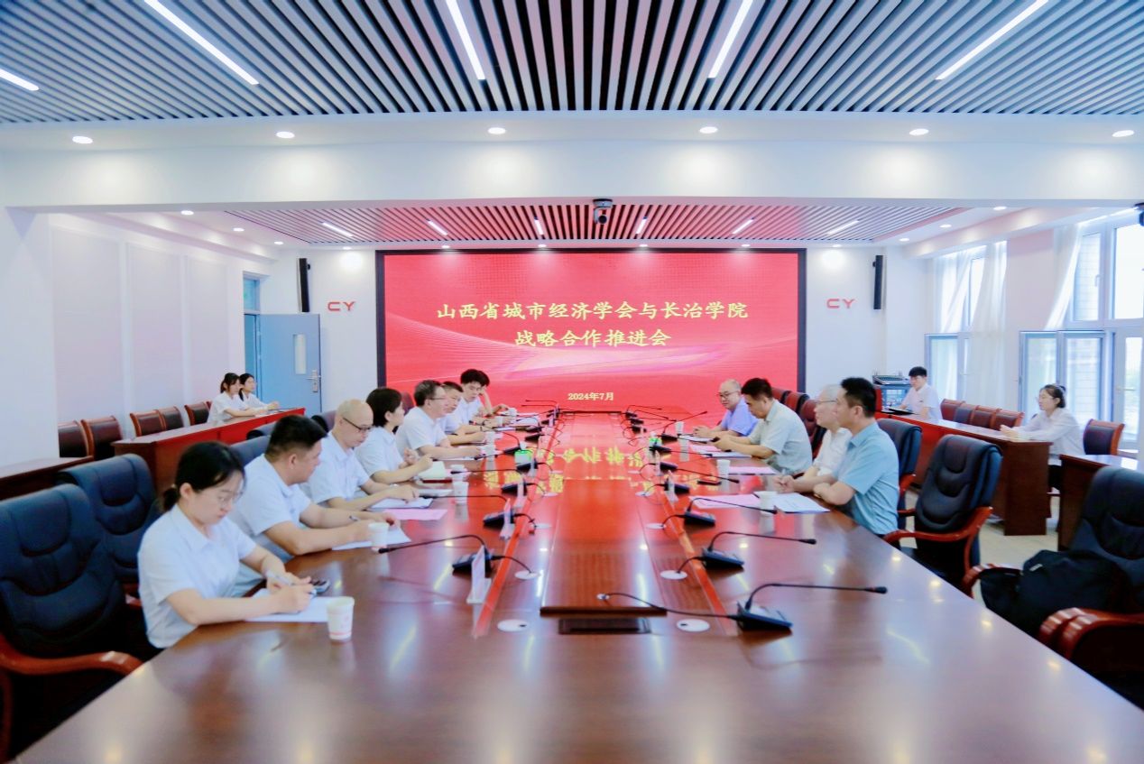 7月16日上午,beat365与山西省城市经济学会在南校区3号教学楼2号会议室举行战略合作推进会。山西省城市经济学会执行会长、秘书长郭长风与校党委书记曹景川进行座谈。山西省城市经济学会监事长李霆,常务副秘书长刘天义,办公室主任郭非,校党委委员、副校长王志军,党委办公室、计财部负责人、资源型城市高质量发展研究中心主任及专职研究员参加合作推进会。
