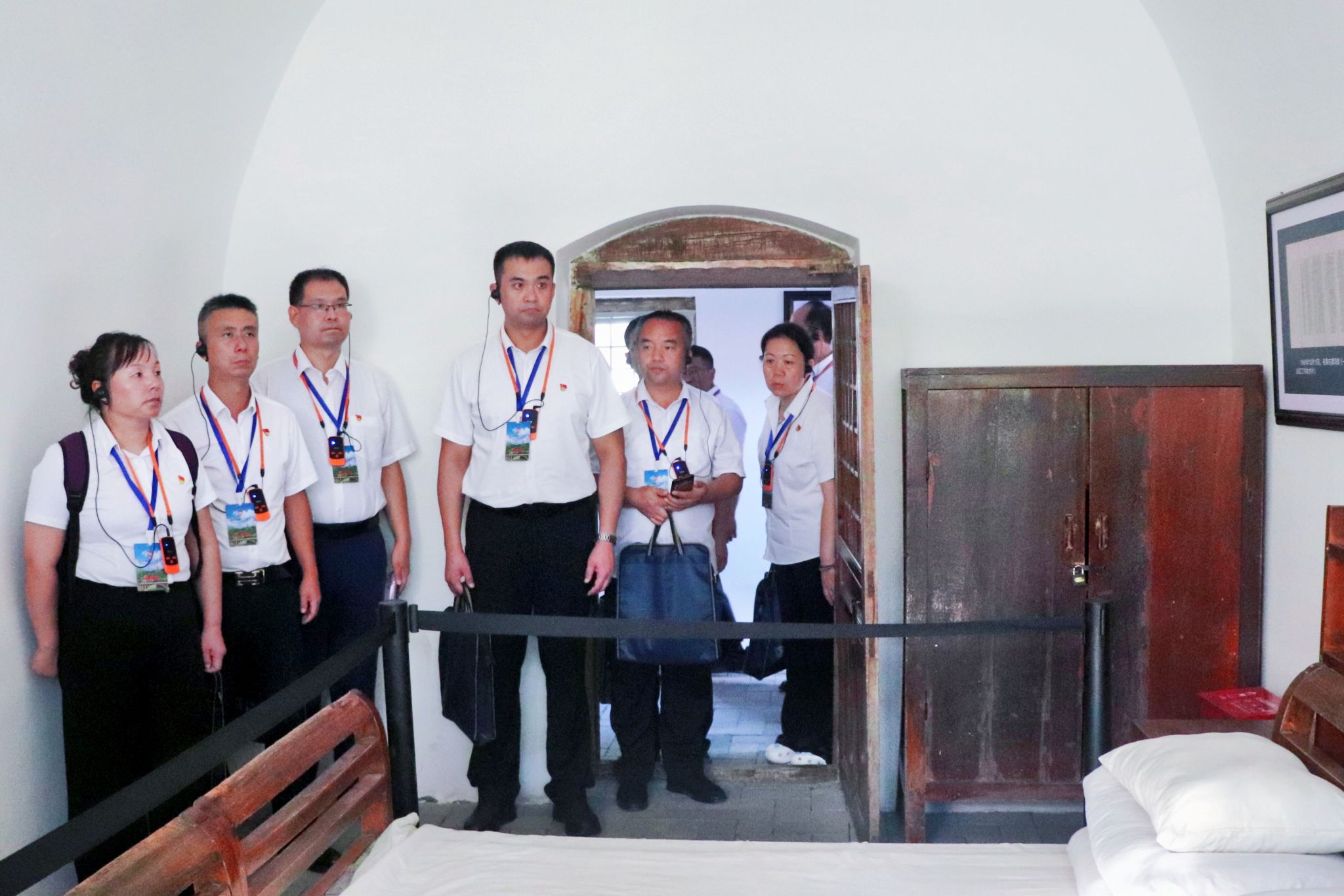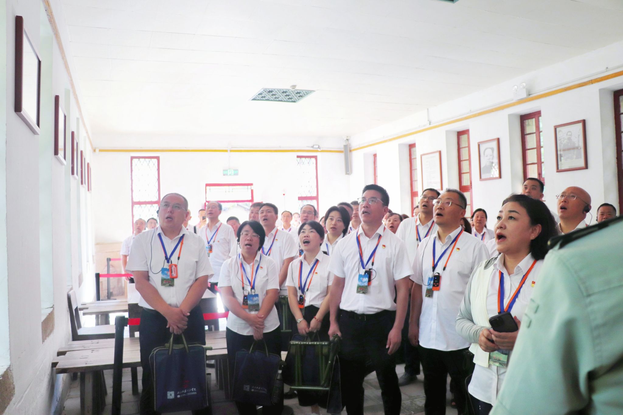 在杨家岭革命旧址,参训学员共同瞻仰中共七大会址,聆听现场教学《重温党的七大 增强看齐意识》。