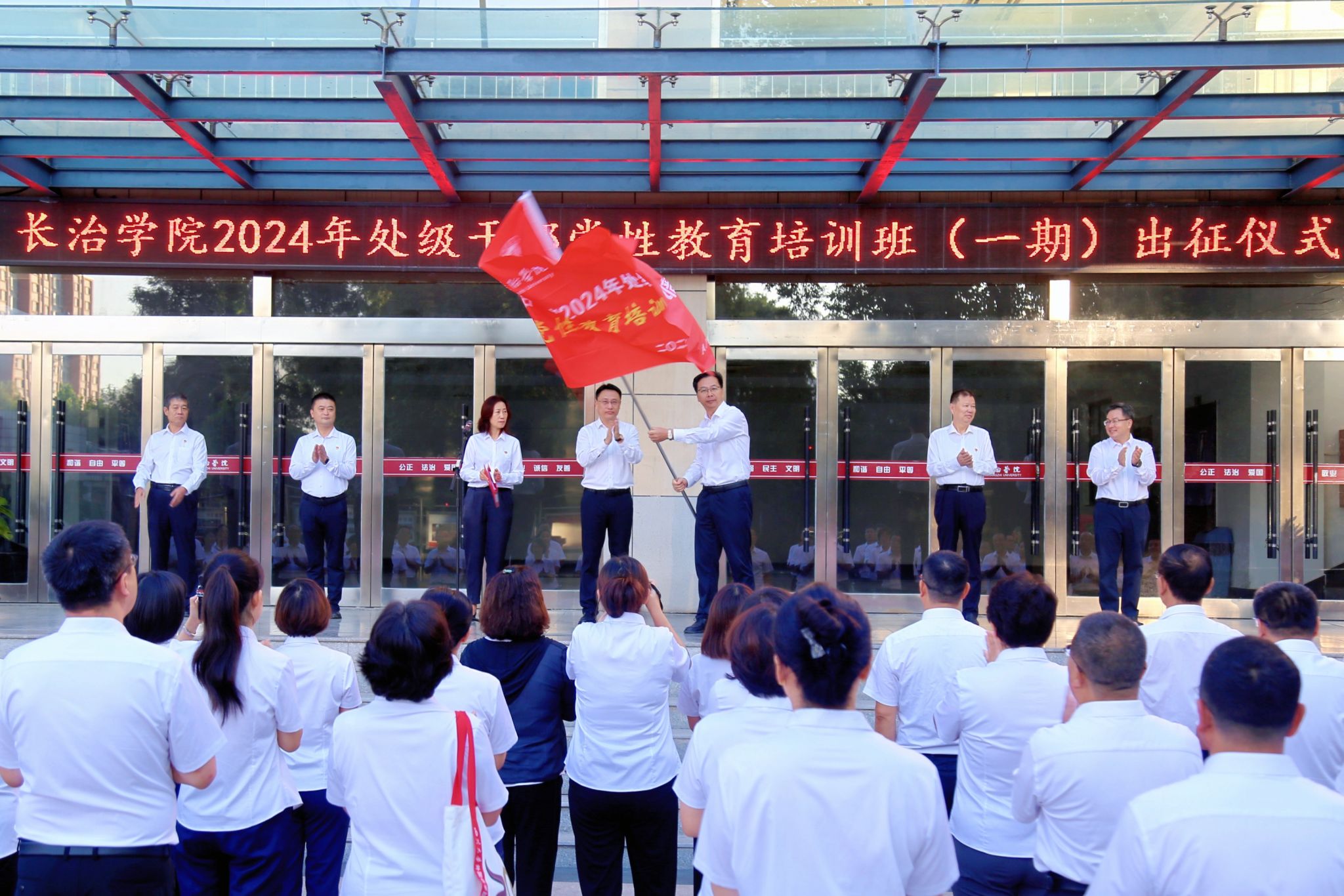 出征仪式上,校党委书记曹景川为培训班授旗。
