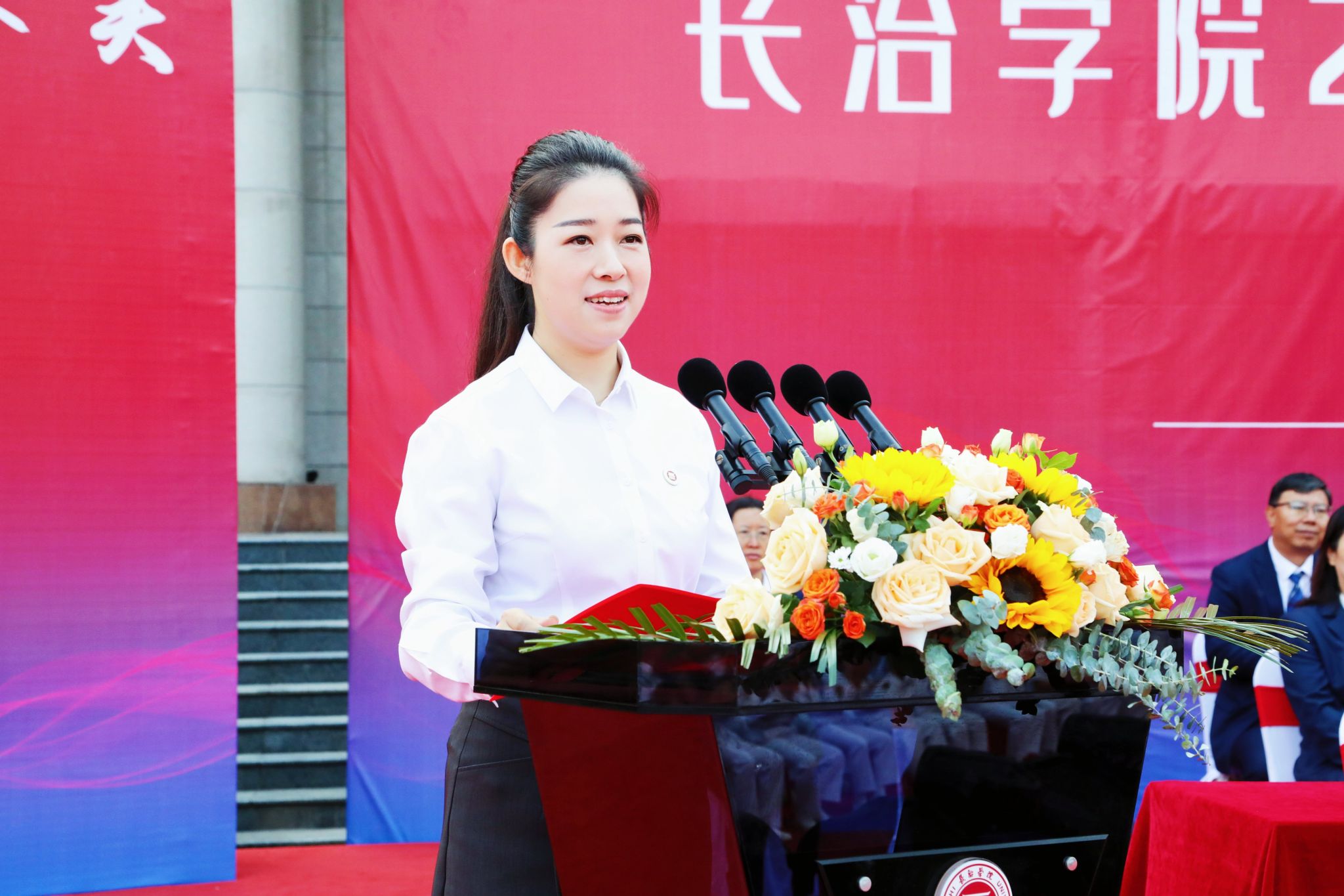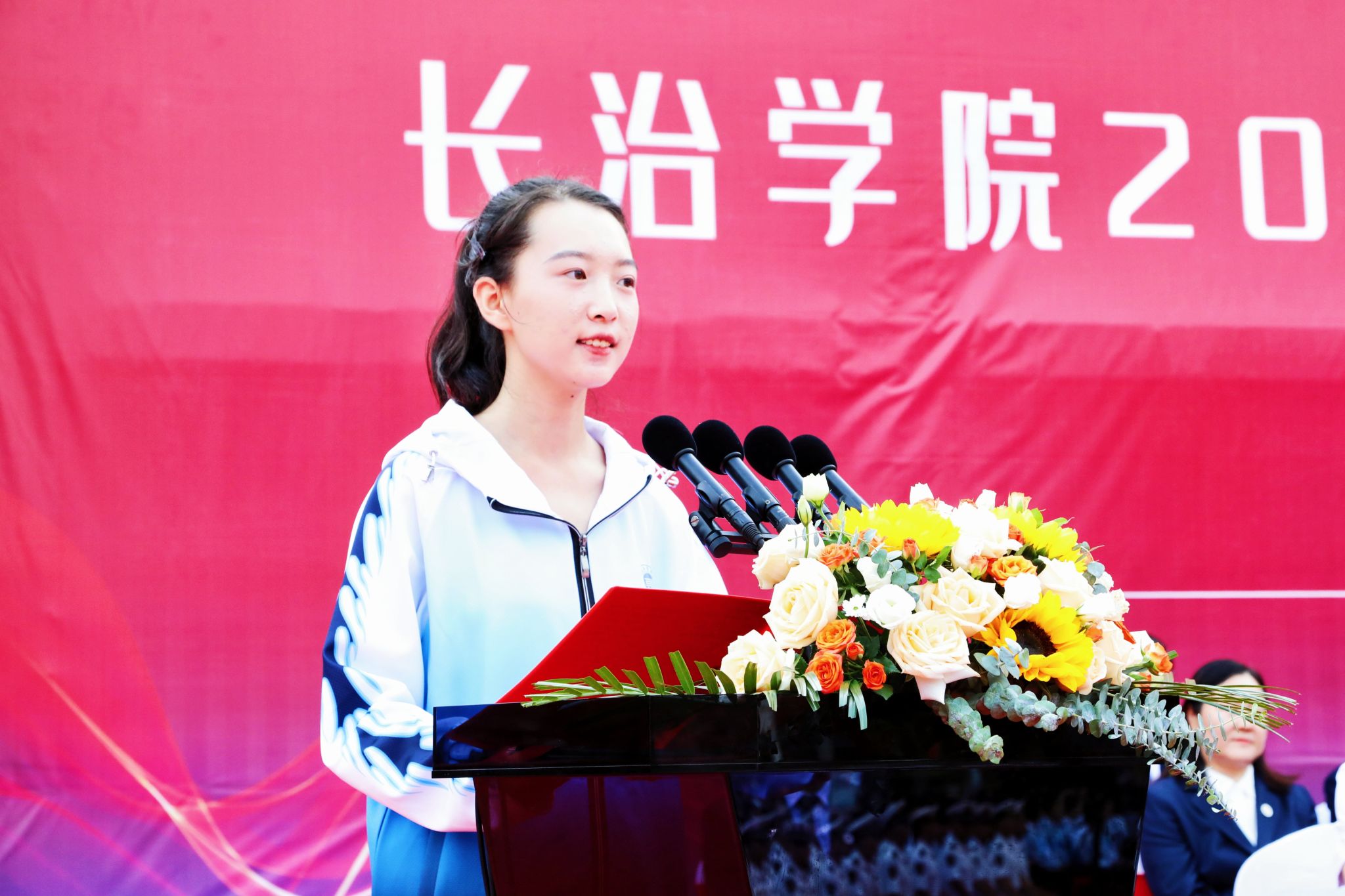 数学系数学2401班冯钰婷作为新生代表发言。她表示,作为新长院人,将恪守“求真、求实、求善、求美”的校训,赓续太行精神,怀揣报国理想,珍惜时间,不断奋进,为学校高质量发展贡献青春力量。