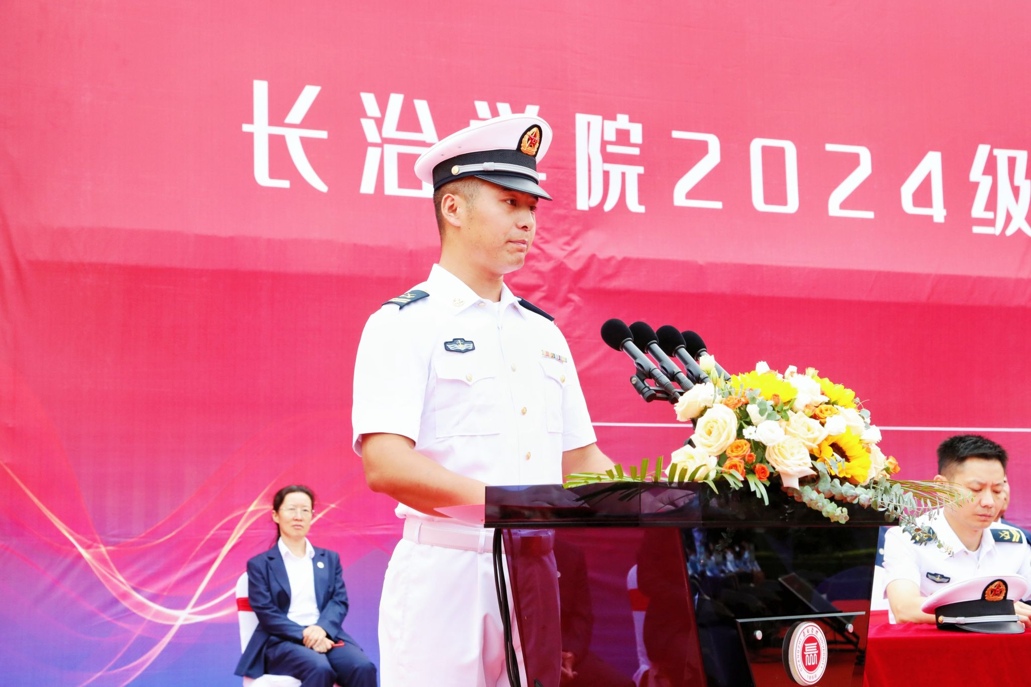 曹景川结合中国健儿在巴黎奥运会展现的顽强拼搏的体育精神,勉励全体新生在长院延续奥运故事,追求卓越、勇于争先,努力收获属于自己的人生“奖牌”。一是要收获“家国情怀”的奖牌。青年学生要勇于担当时代赋予的责任,在人生的赛场上,把自己的命运与时代紧密相连,始终把个人的理想追求融入党和国家事业之中,在踔厉奋发、勇毅前行中书写自己不平凡的人生篇章;二是要收获“笃志奋斗”的奖牌。希望大家能够继续保持奋斗的决心和毅力,生逢盛世而不负盛世,肩负使命而不负使命,在实现中国式现代化的壮阔进程中,绽放最美的青春年华,做强国建设、民族复兴的先锋力量;三是收获“永不言弃”的奖牌。人生无坦途,沿路有风雨。无论顺境逆境,希望大家都能像奥运健儿一样,勇于超越自我、坦然面对得失,在“长院的赛场”找到方向、突破自我,书写属于自己的精彩篇章。
