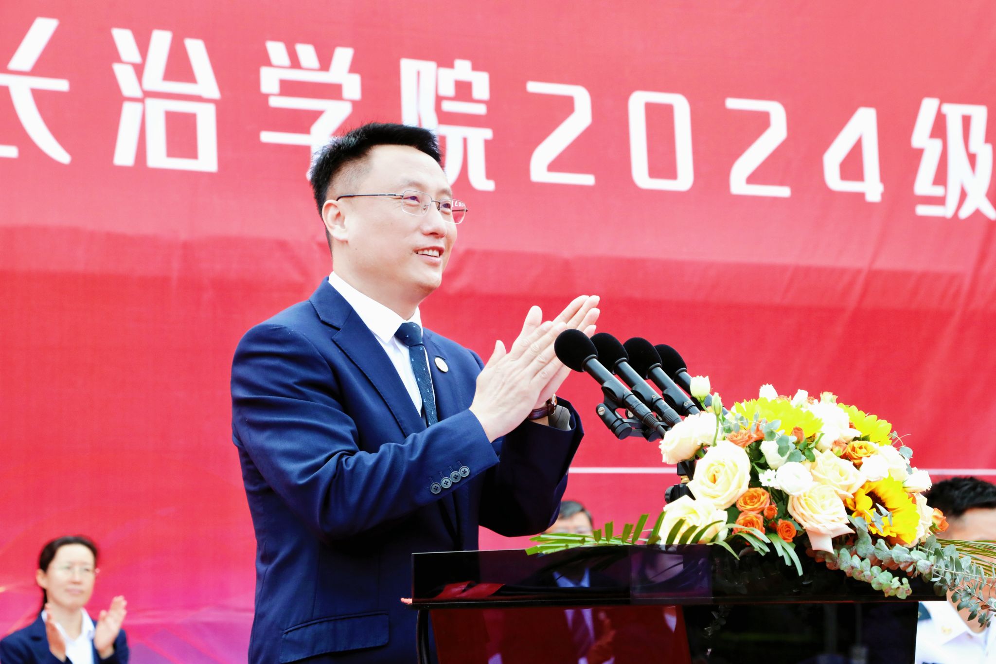 校党委书记曹景川代表学校向2024级新生表示热烈欢迎和衷心祝贺!他以“在长院,收获属于自己的人生奖牌”为题,向新生致辞。他表示,66年的砥砺奋进,今日的长院发展生机勃勃、充满希望。学校2024年软科中国大学排名历史性跨入省内高校榜单前10位,全国排名在2023年跃升73位的基础上再次提升41位。学校二本A类招生专业达到近60%,生源结构持续优化,办学质量持续提升。同时,具有长院特色的现代化新校园已经在漳泽湖畔开工建设。2024级新生的到来为学校注入了新的力量和希望,必定能创造出更加美好的未来。