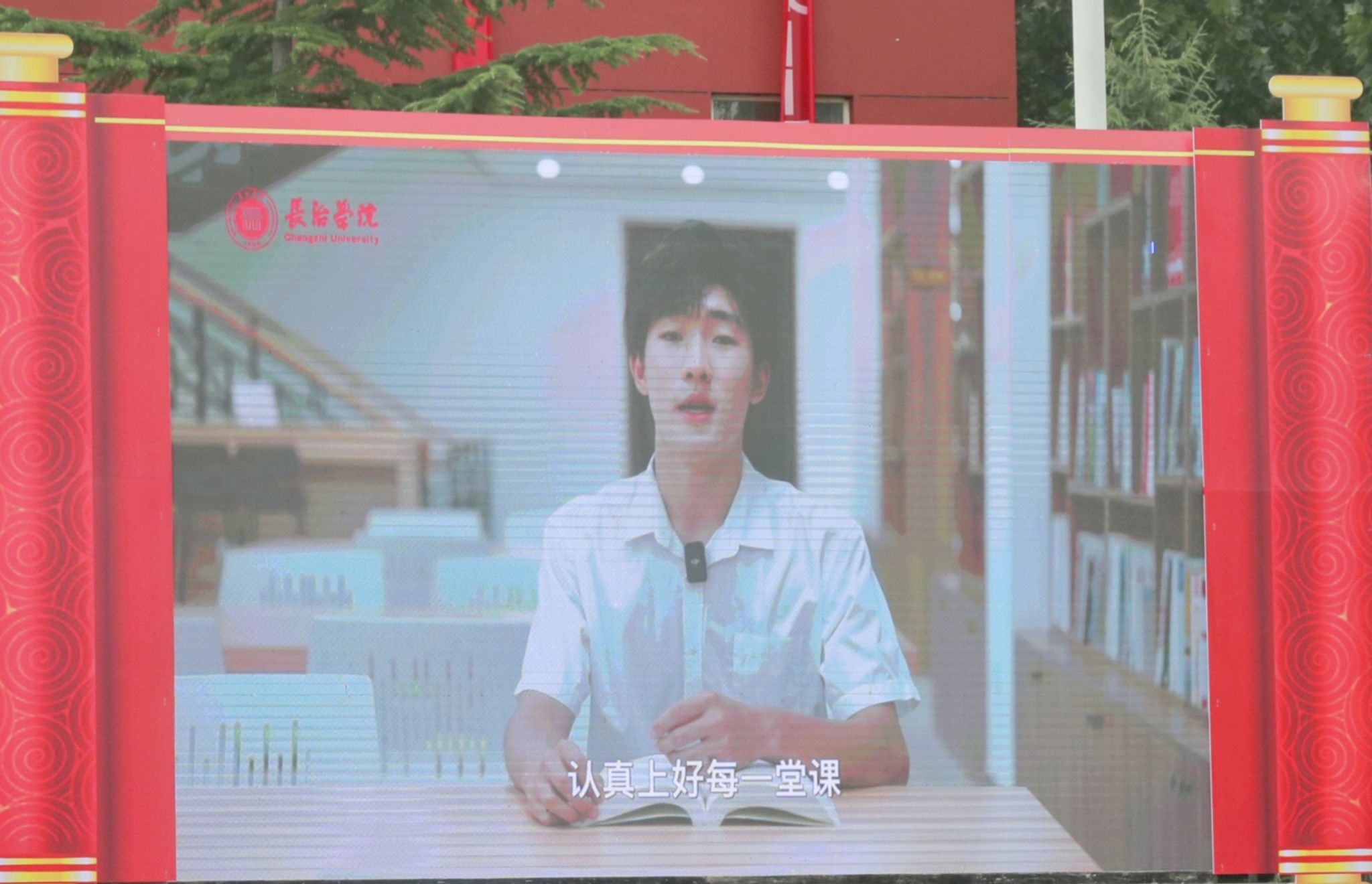 大会现场播放了教师代表、高年级学生代表和教学辅助单位对新生的寄语视频。