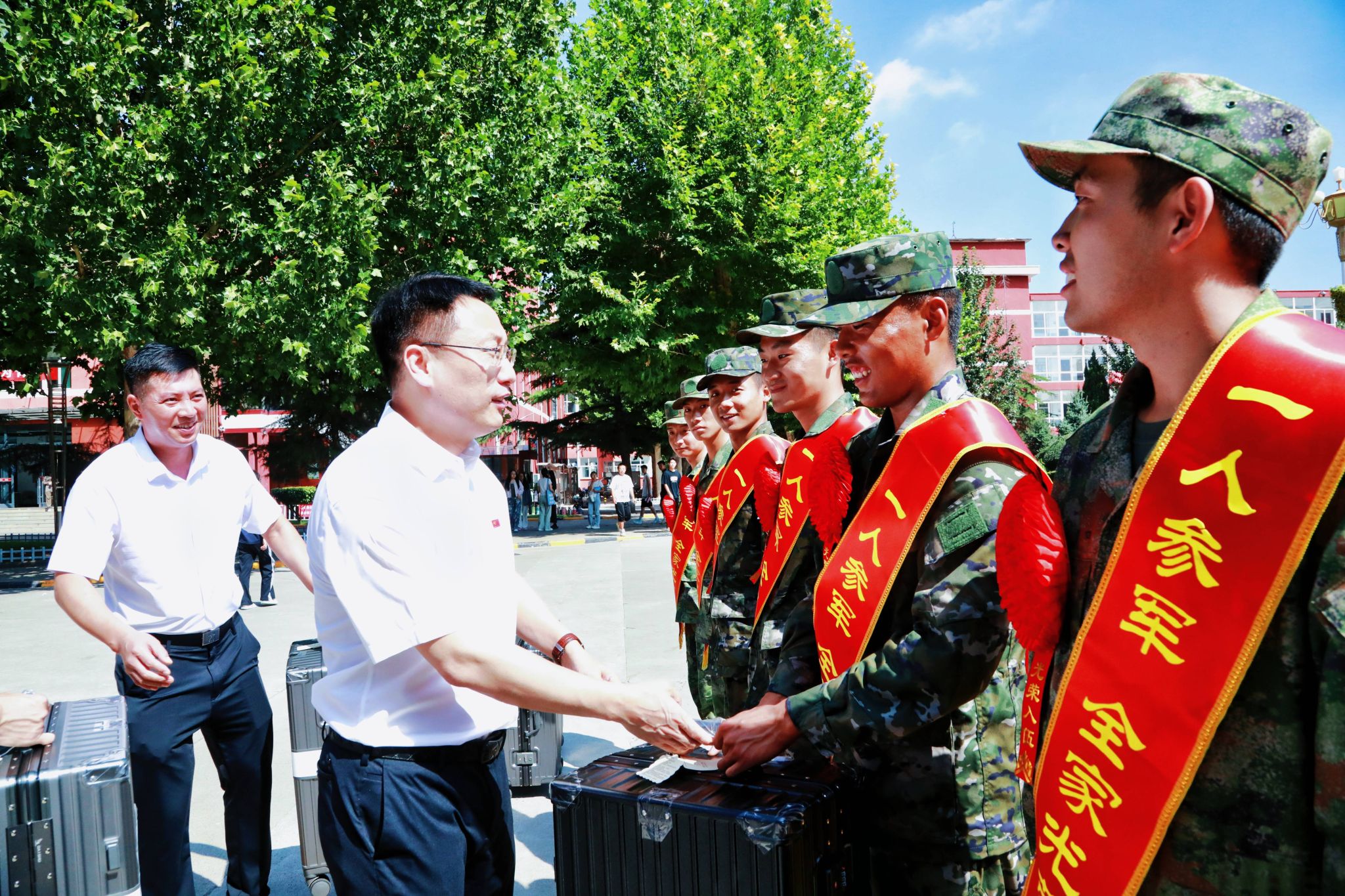 强国必须强军,军强才能国安。beat365深入贯彻落实习近平强军思想,高度重视征兵工作,积极响应国家政策,号召大学生应征入伍报效祖国。9月20日上午,校党委书记曹景川,党委委员、副校长武月明带队,欢送慰问即将启程奔赴军营的长院学子。武装部(保卫部)部长许小平等参加活动。