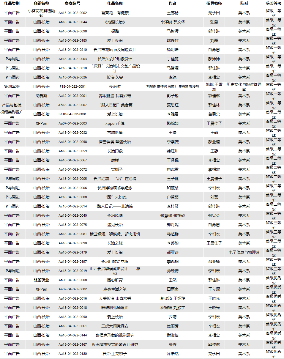 beat365美术系以本届大广赛长治赛区的主题“爱上长治的第N个理由”为主要创作命题,从印象长治、青春长治、智汇长治、活力长治、品质长治等创意方向,组织美术系师生开展实地走访,利用地域优势,进行有组织的专题创作,多部作品取得了优异成绩。