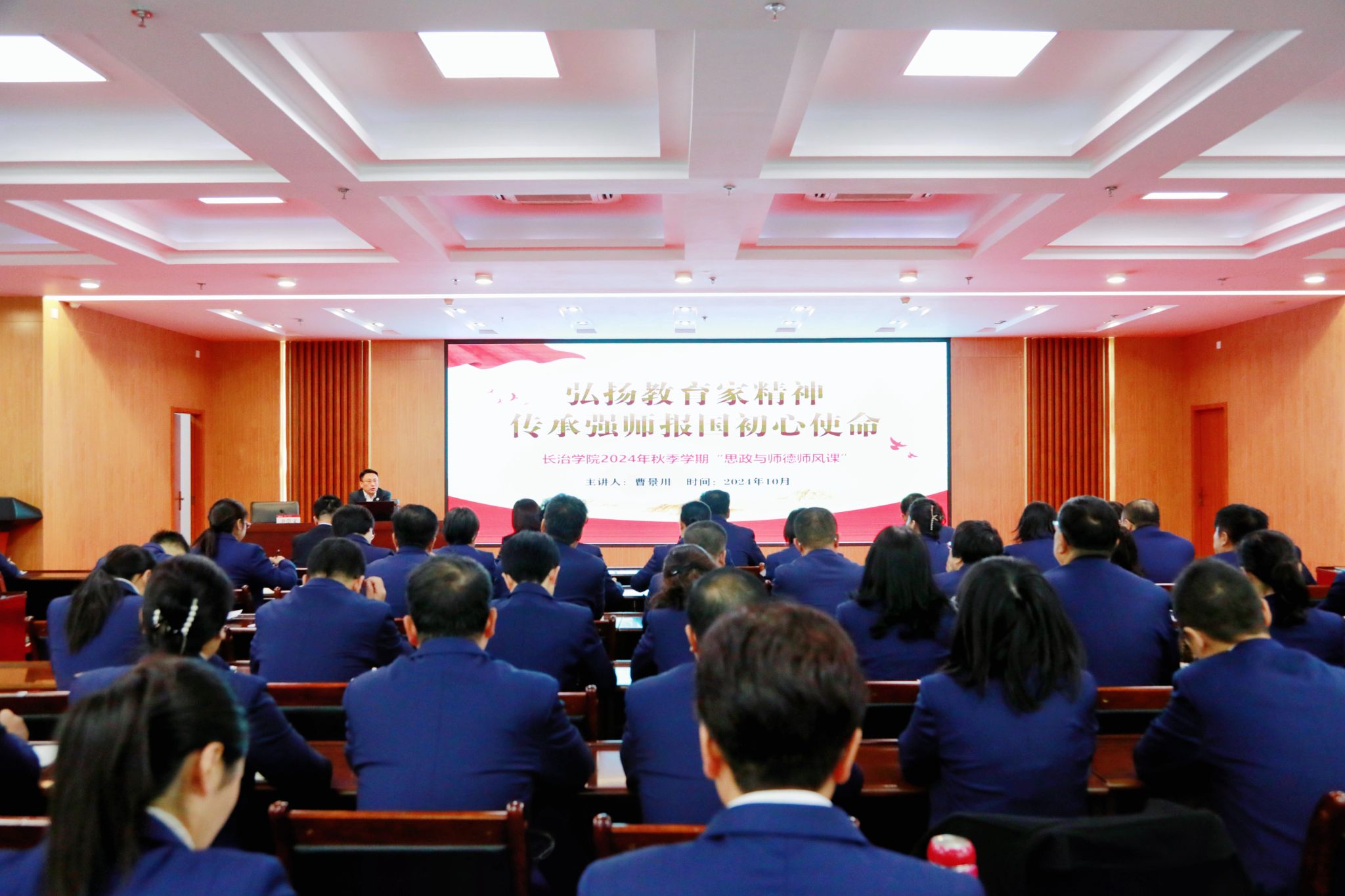为深入学习贯彻党的二十届三中全会精神,大力弘扬教育家精神,进一步深化学校师德师风建设,10月21日,党委书记曹景川以《弘扬教育家精神 传承强师报国初心使命》为题在北校区1号会议室讲授“思政与师德师风课”。校领导史晓东、焦雨、卫崇文、铁军、武月明出席。各二级党组织书记、各职能部门负责人、各院系班子成员、教工党支部书记及教研室主任、实验室主任、专职辅导员代表和附属太行中学班子成员等150余人参加。活动由党委委员、副校长卫崇文主持。