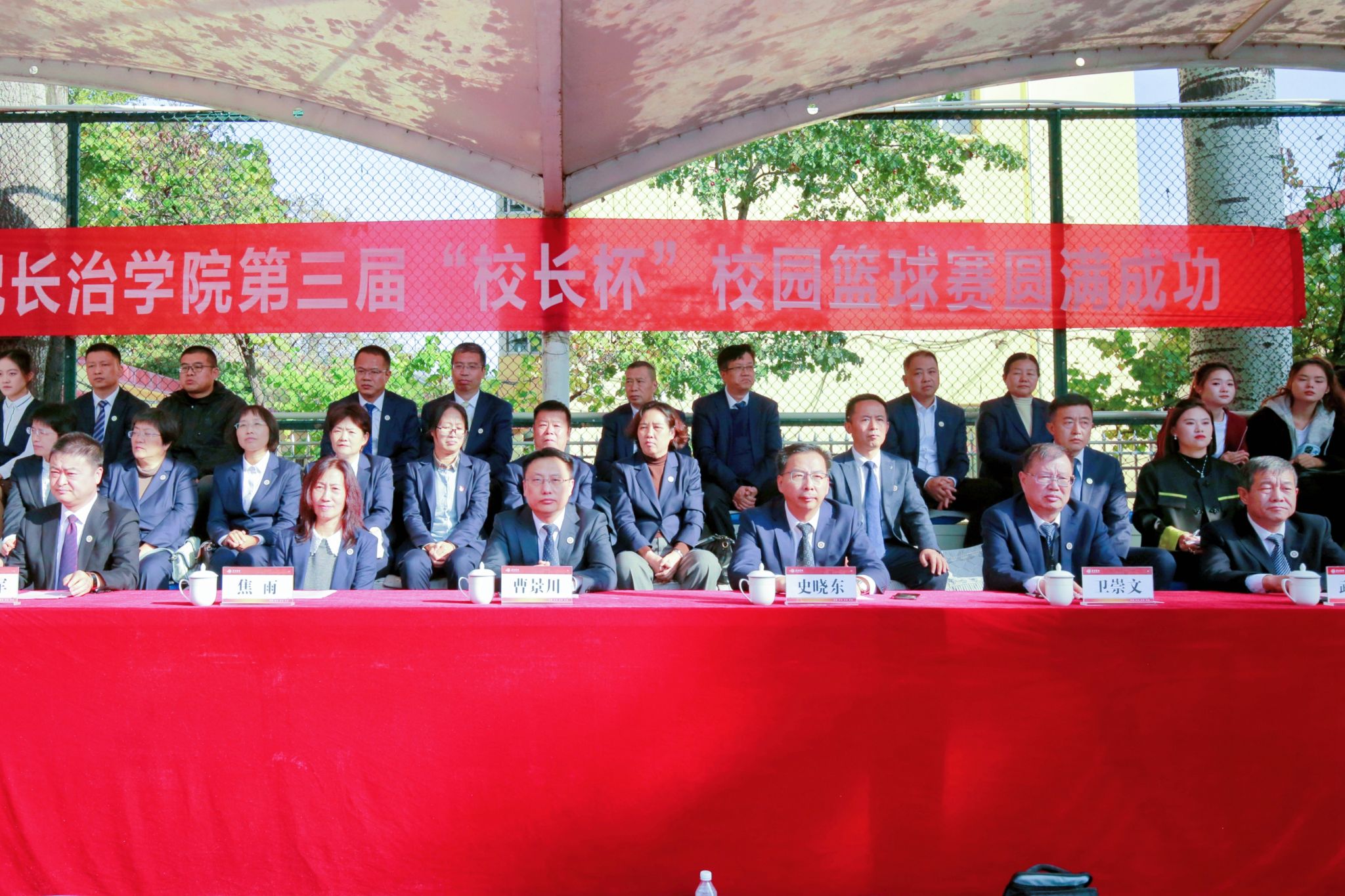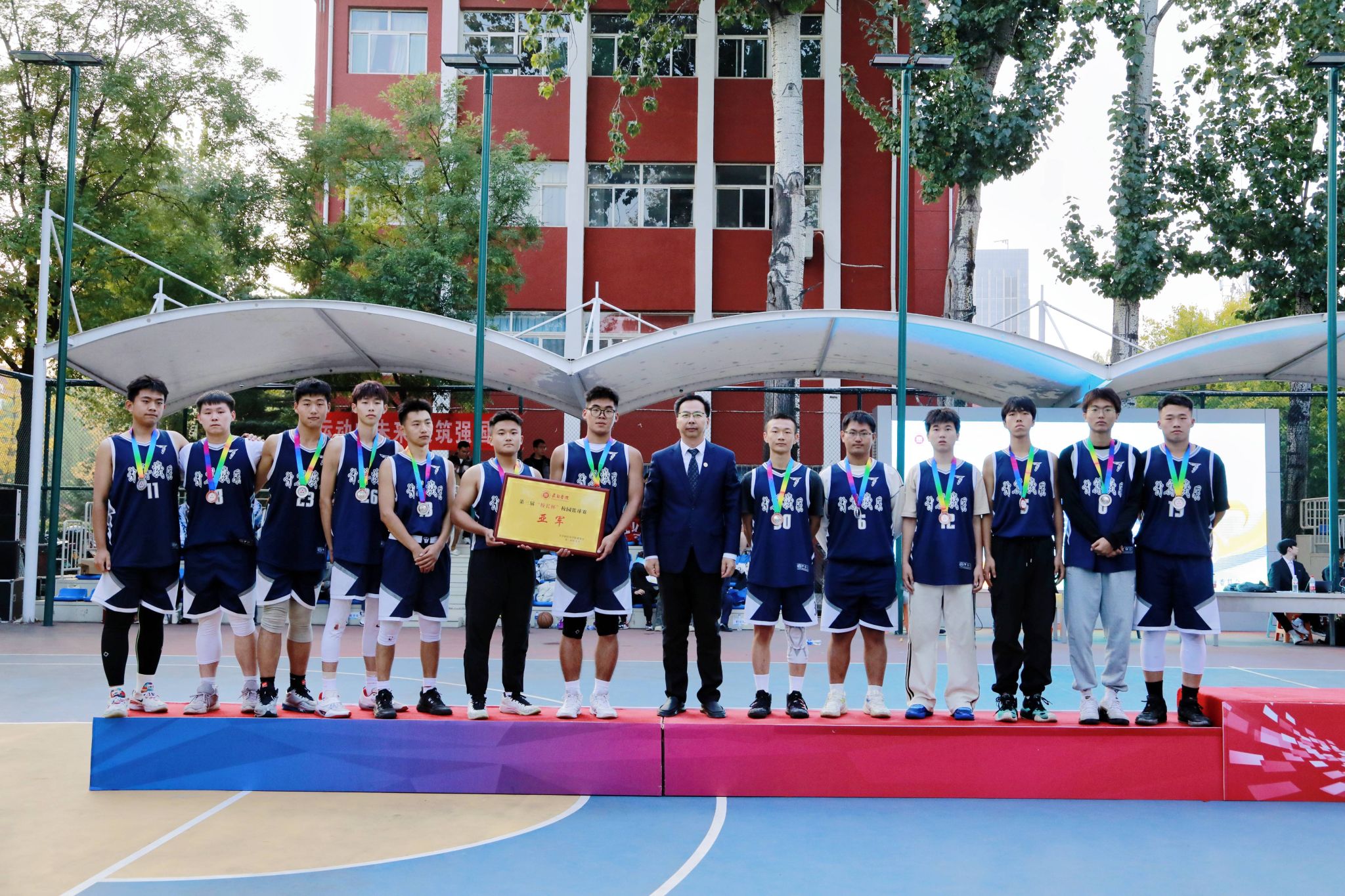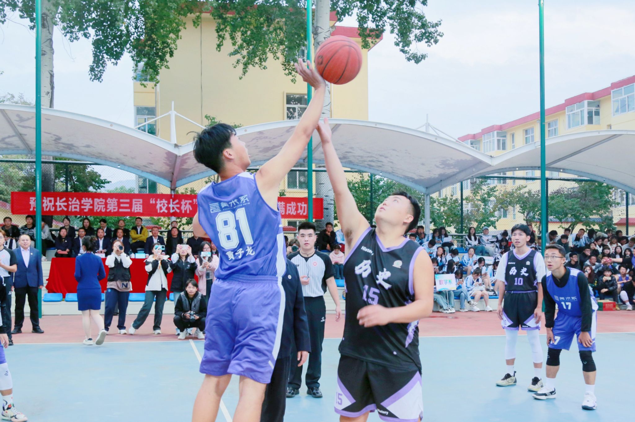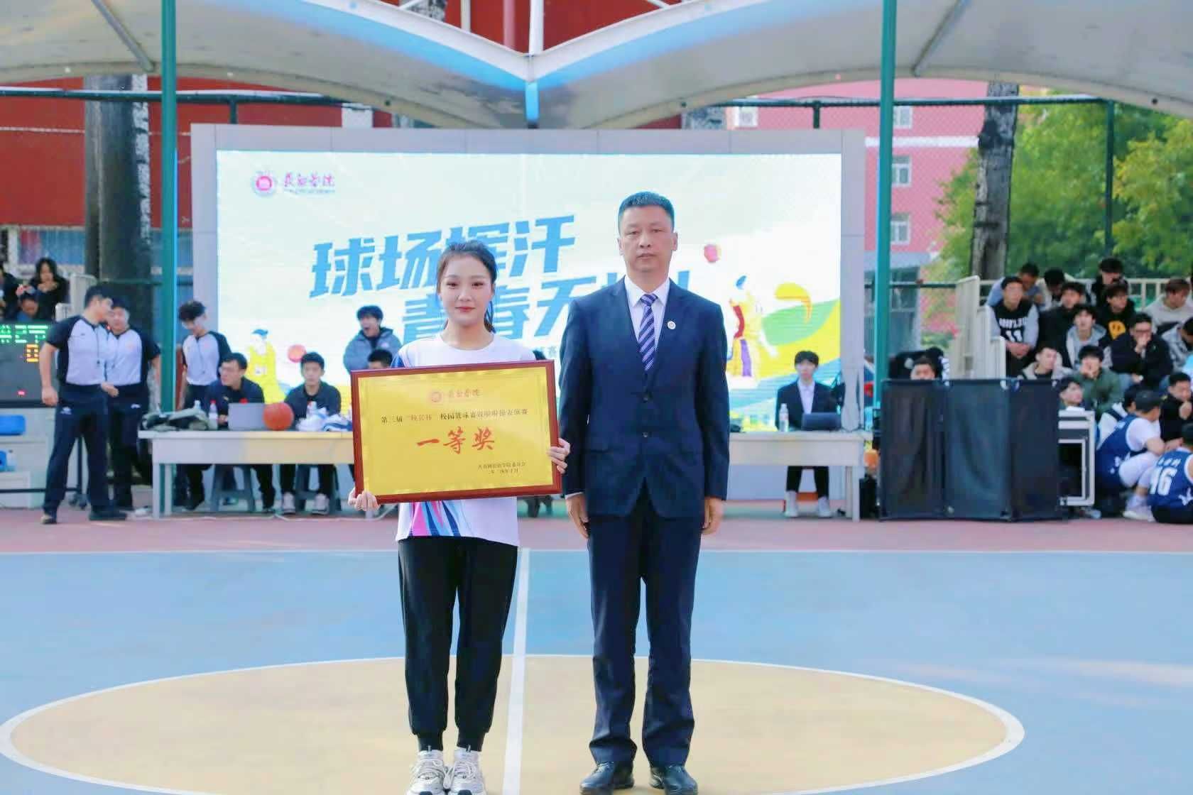 为进一步丰富校园文化生活,营造积极向上、奋发拼搏的良好氛围,10月28日下午,第三届“校长杯”校园篮球赛决赛暨闭幕式在南校区星光球场举行。校领导曹景川、史晓东、焦雨、卫崇文、铁军、武月明出席,相关职能部门、院系负责人及教师、学生代表现场观看并加油助威。