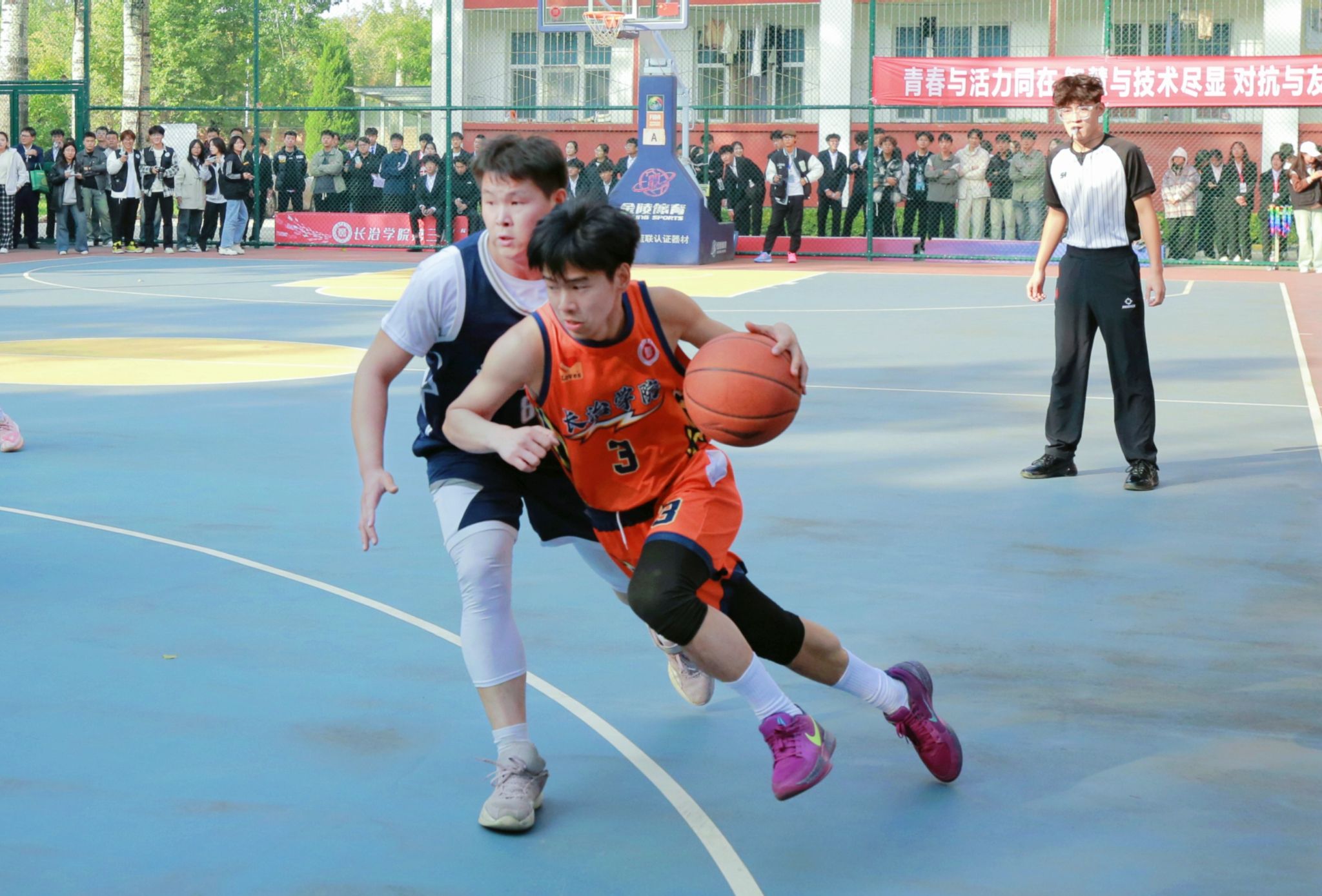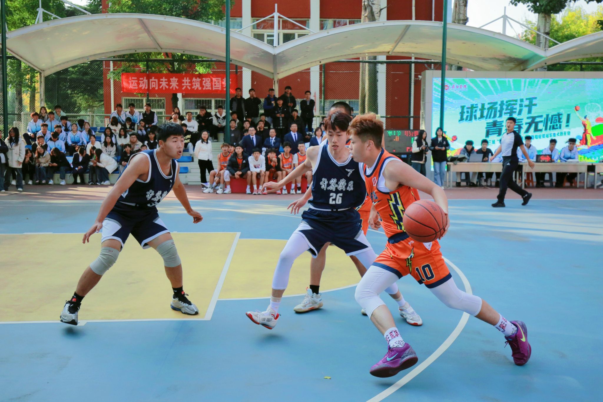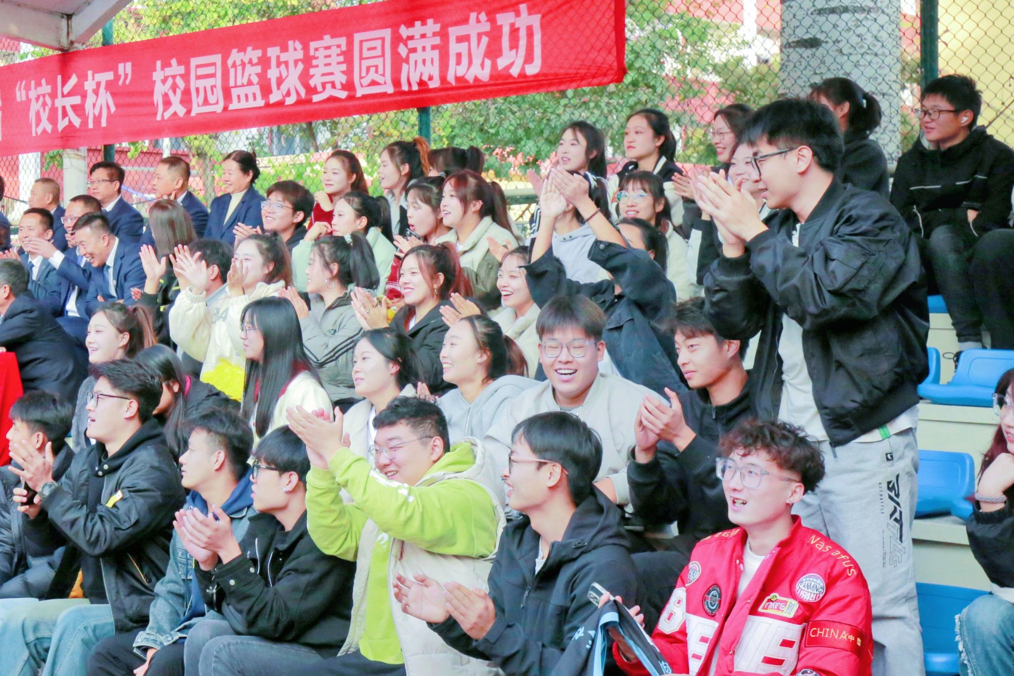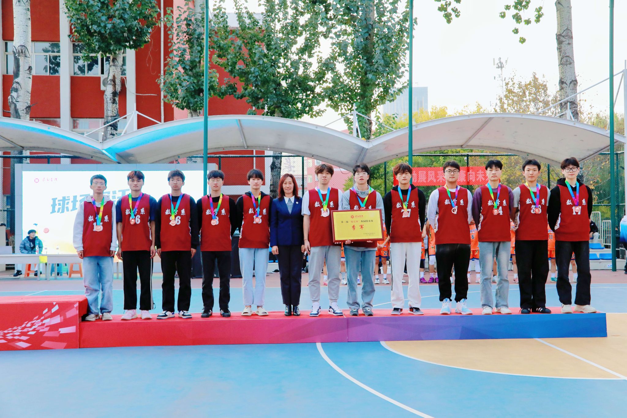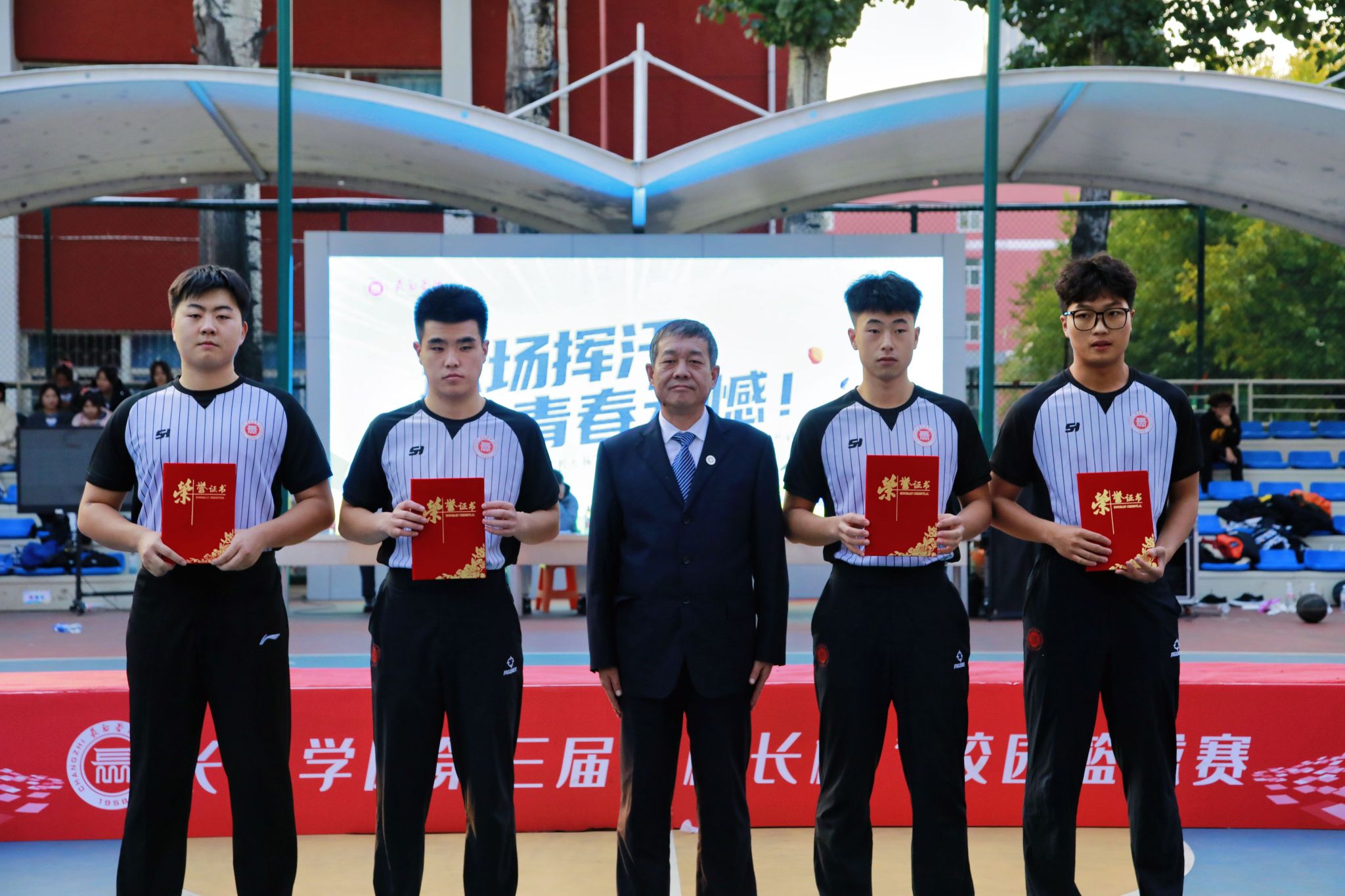 为进一步丰富校园文化生活,营造积极向上、奋发拼搏的良好氛围,10月28日下午,第三届“校长杯”校园篮球赛决赛暨闭幕式在南校区星光球场举行。校领导曹景川、史晓东、焦雨、卫崇文、铁军、武月明出席,相关职能部门、院系负责人及教师、学生代表现场观看并加油助威。