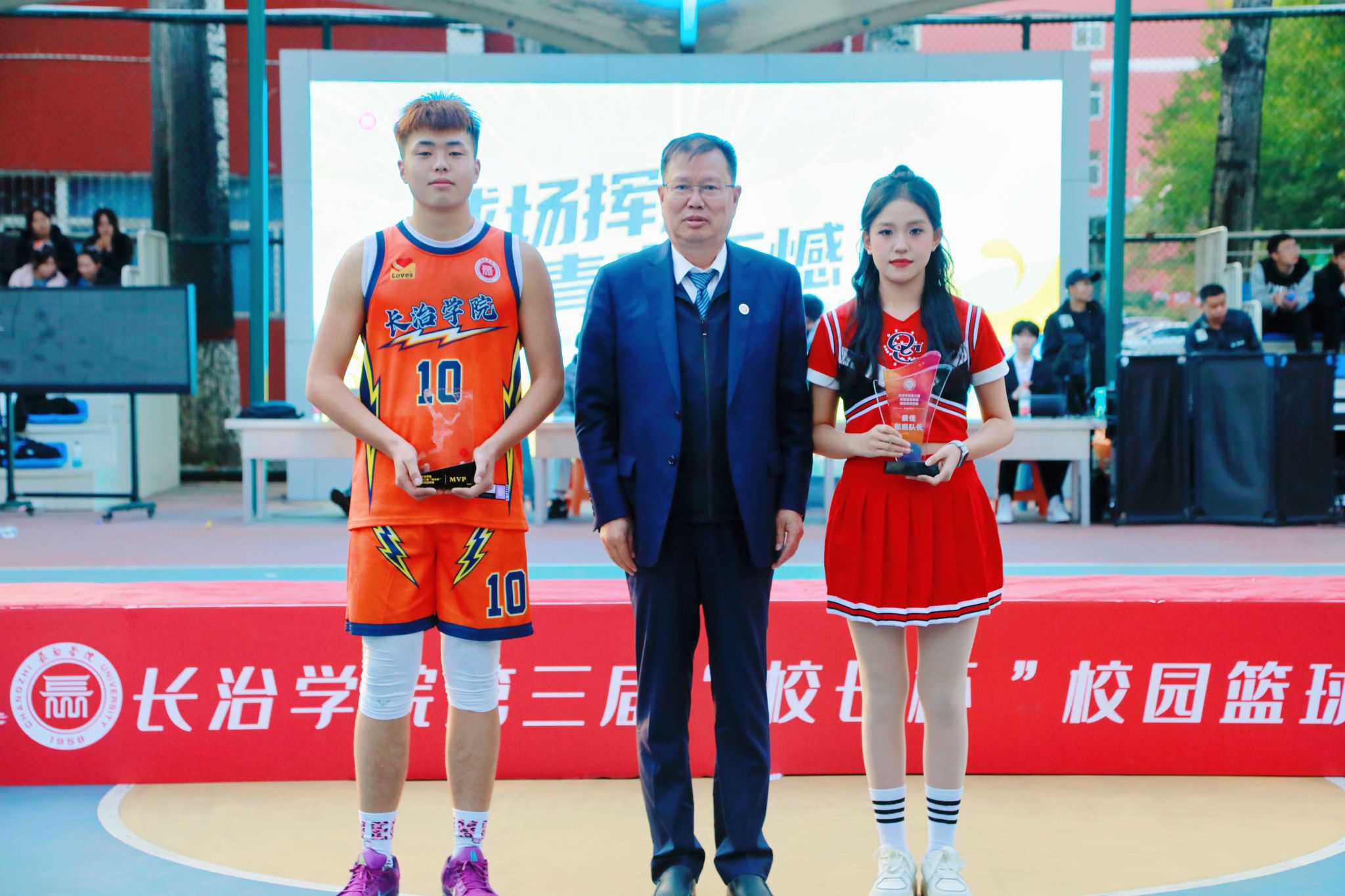 校党委委员、副校长卫崇文为“最佳球员(MVP)”和“最佳啦啦队长”颁奖
