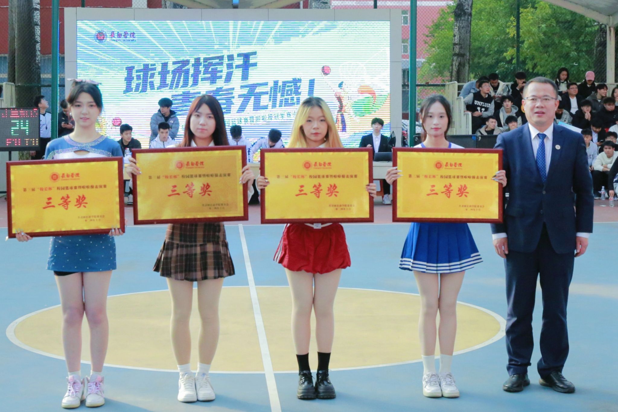 体育系党委书记冯晋军颁发啦啦操表演三等奖