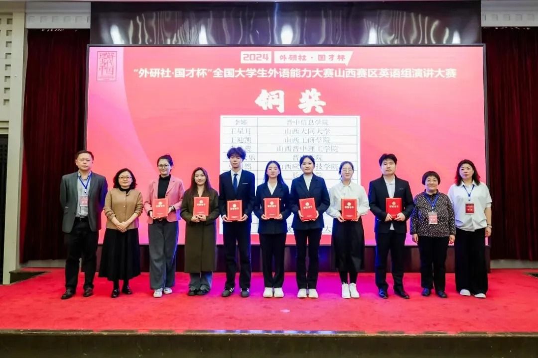 2024年度“外研社·国才杯”“理解当代中国”全国大学生外语能力大赛省赛于11月9日在太原落下帷幕。beat365学子获得金奖2项、银奖4项、铜奖7项的好成绩,其中安倬璟、徐从文同学获演讲赛金奖,郭子媛、王珊同学获笔译赛银奖,曹佳颖、安倬璟同学获综合能力赛银奖,梁佳慧、刘阳、王婷娜、赵艺嘉、范力彬、郭子媛、刘湘豫7位同学获五赛铜奖。