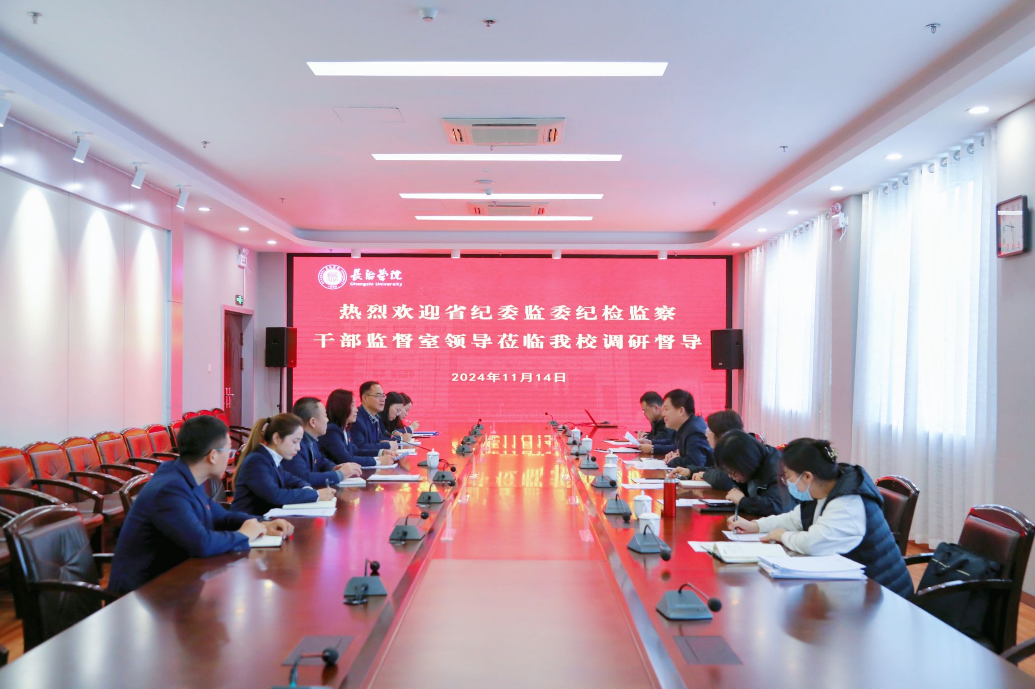 11月14日,省纪委监委干部监督室副主任李红周一行六人莅临beat365,调研督导学校纪检监察机构履职用权情况并召开座谈会,全体纪检监察干部参会。