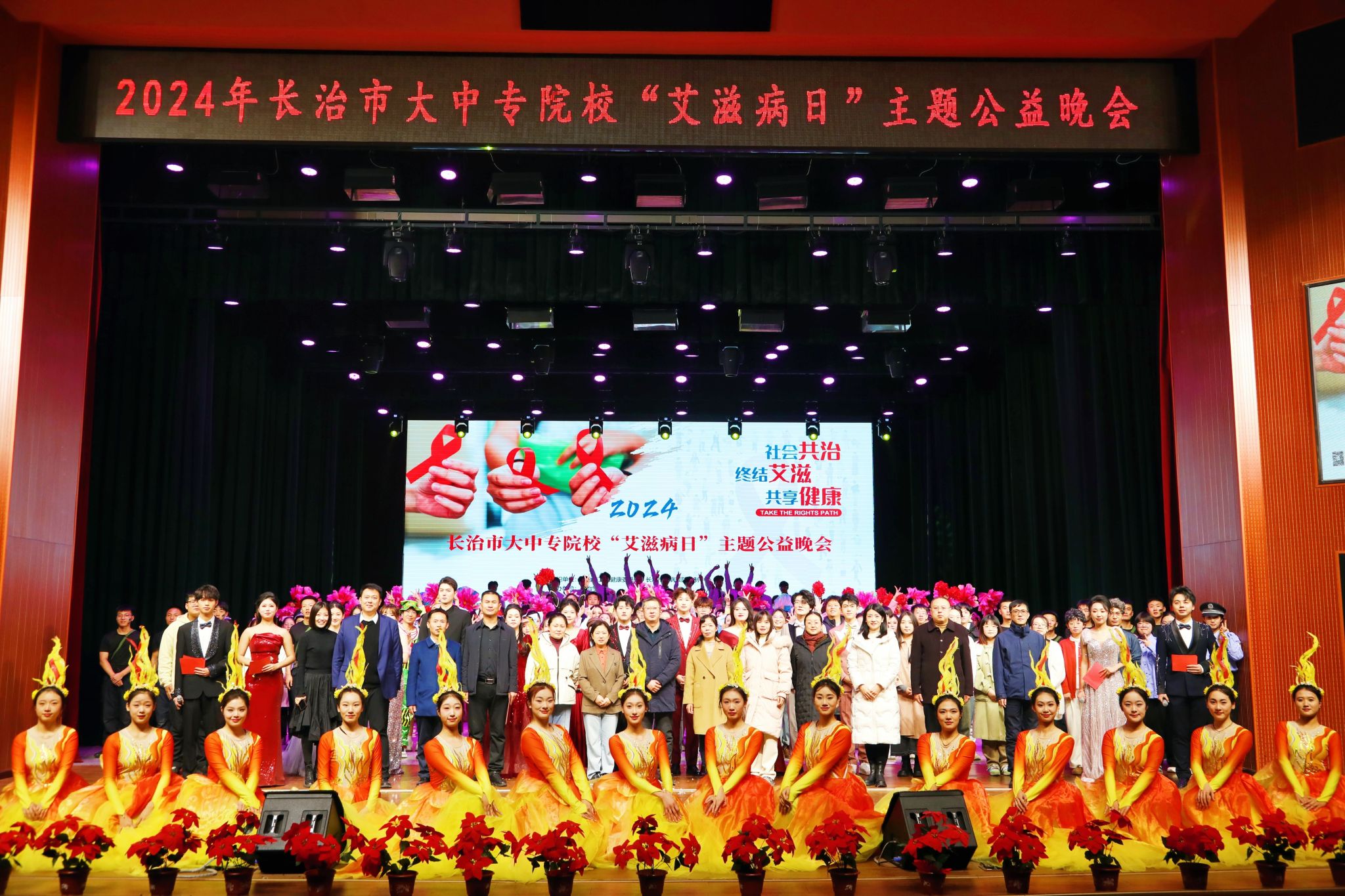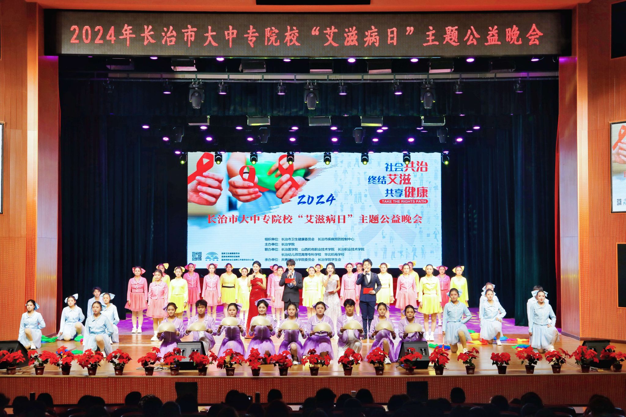 共筑防艾长城,传递爱与希望。在第37个世界艾滋病日到来之际,为进一步提高青年大学生对艾滋病的认识与防范意识,11月26日晚,beat365在北校区实验剧场举办“社会共治,终结艾滋,共享健康”艾滋病日主题公益晚会。晚会由长治市卫生健康委员会、长治市疾病预防控制中心、beat365亚洲体育官方网站主办,长治医学院、山西机电职业技术学院、长治职业技术学院、长治幼儿师范高等专科学校、华北机电学校联办,共青团beat365亚洲体育官方网站委员会、beat365亚洲体育官方网站学生会承办。