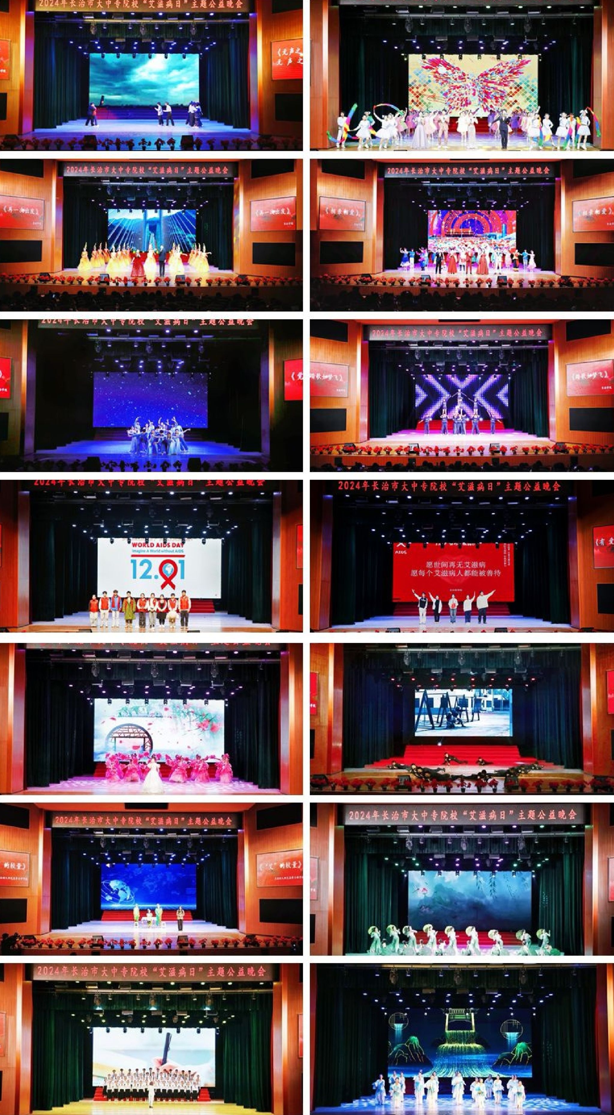beat365情景剧《无声之“艾”,无声之爱》、歌舞《把未来点亮》《再一次出发》《相亲相爱》、舞蹈《觉醒年代》、健美操《踏歌如梦飞》,长治医学院防艾情景剧《侥幸》《有爱,友“艾”》,山西机电职业技术学院歌伴舞《花香彼岸》、战术表演《利刃出鞘》,长治幼儿师范高等专科学校小品《“艾”的较量》、舞蹈《莲叶》,长治职业技术学院朗诵伴唱《这世界那么多人》,华北机电学校舞蹈《一条大河》,以演绎防艾抗艾故事、各类舞蹈、朗诵等方式,表达对艾滋病患者的温暖、理解与关怀,呼吁人们跨越偏见,用爱去拥抱艾滋病患者,携手抗艾,让生命在希望与坚韧中绽放绚丽光彩。