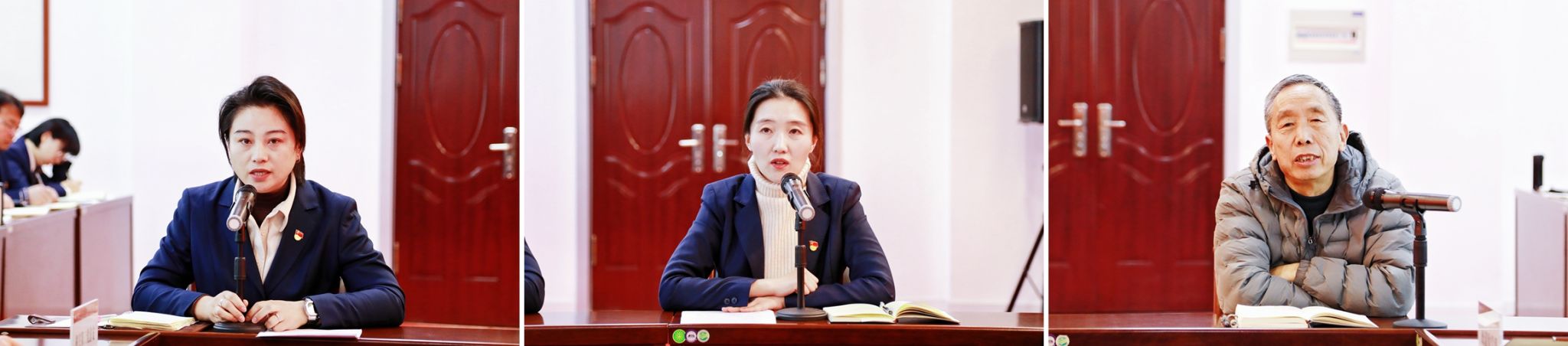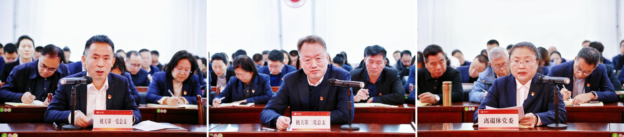 机关一总支书记韩峰、机关二总支书记杨巧和离退休党委书记秦晋荣分别就2024年度党建基本情况进行汇报。