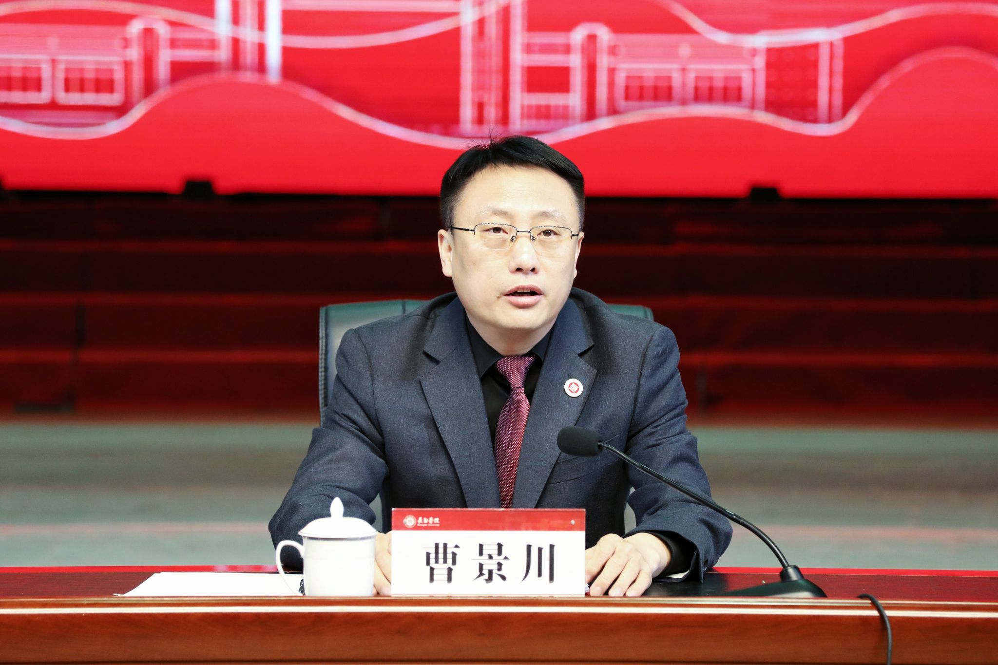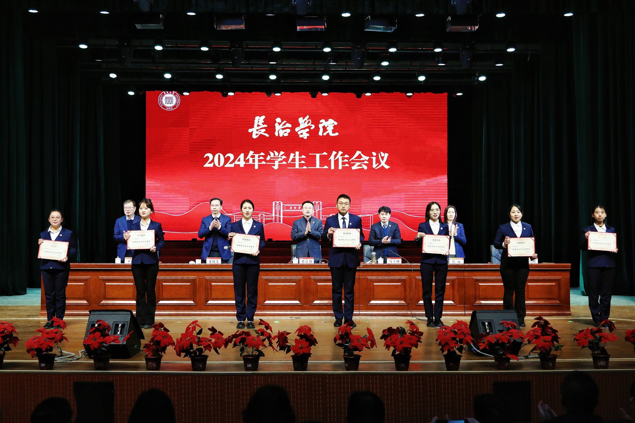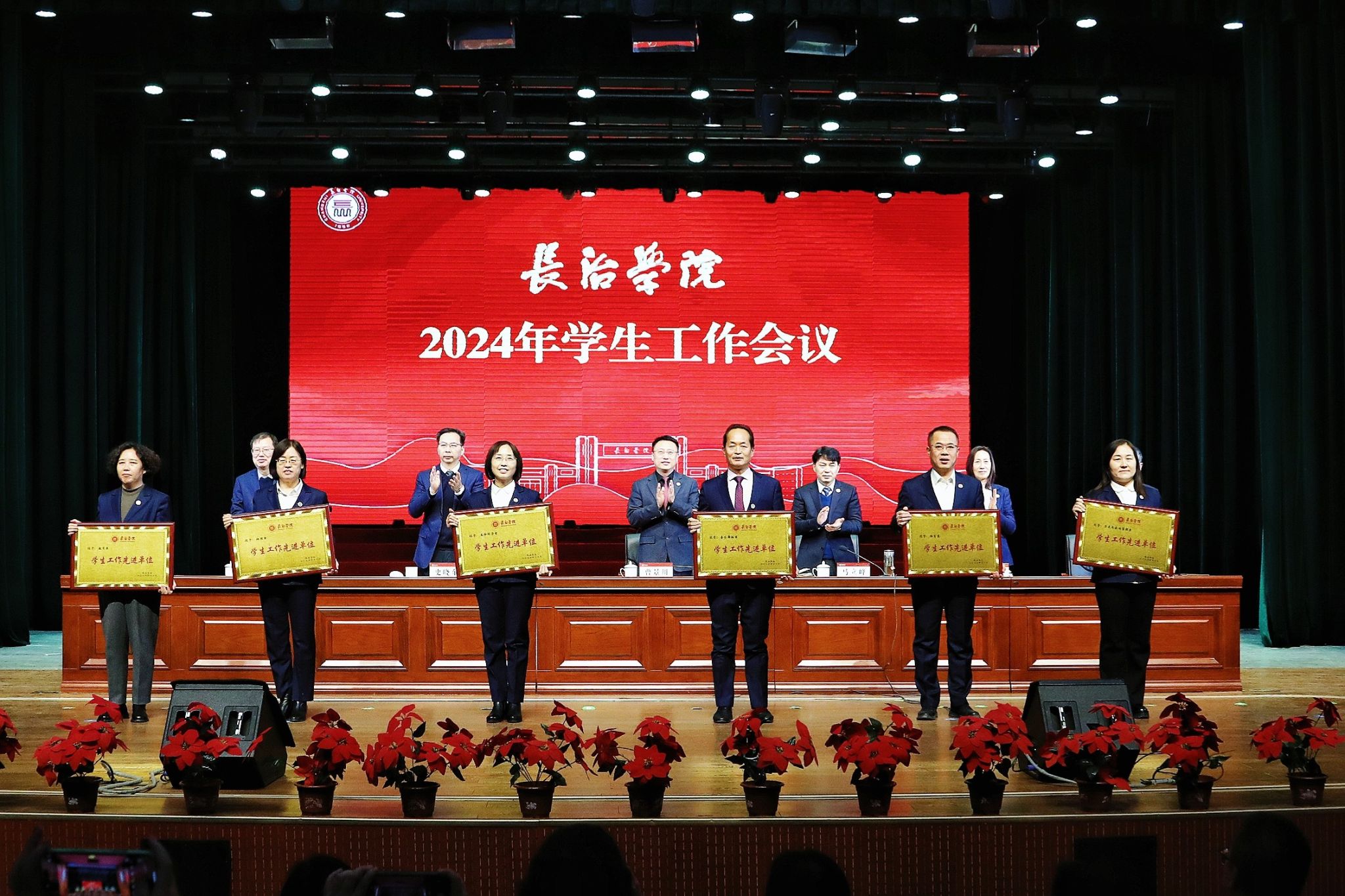 校党委书记曹景川以《胸怀国之大者 培育时代新人——努力开创地方应用型本科高校学生工作新局面》为题作总结讲话。他充分肯定了一年来学生工作取得的成绩,对全体学工队伍及广大教职工的辛勤付出表示感谢,向取得优异成绩的先进集体和个人表示祝贺。他强调,要坚持以学生为中心的工作理念,扎实落实立德树人根本任务,为学生全面发展提供坚实保障,为学校高质量发展蓄势赋能。他勉励广大长院学子,一是坚定理想信念,传承红色基因。要大力弘扬太行精神,学习黄文秀先进事迹,锤炼坚强意志品质、砥砺奋斗精神品格。二是紧跟时代需求,锤炼技能本领。要紧跟时代前沿趋势,夯实专业基础,提升综合素质。三是涵养优良学风,绽放青春活力。要传承长院优良学风,积极参加课内外活动,在充满活力的校园文化中展示风采。四是关照身心健康,塑造阳光心态。要积极响应“健康长院”建设目标,做眼里有光、身上有汗、脚下有力的青年大学生。