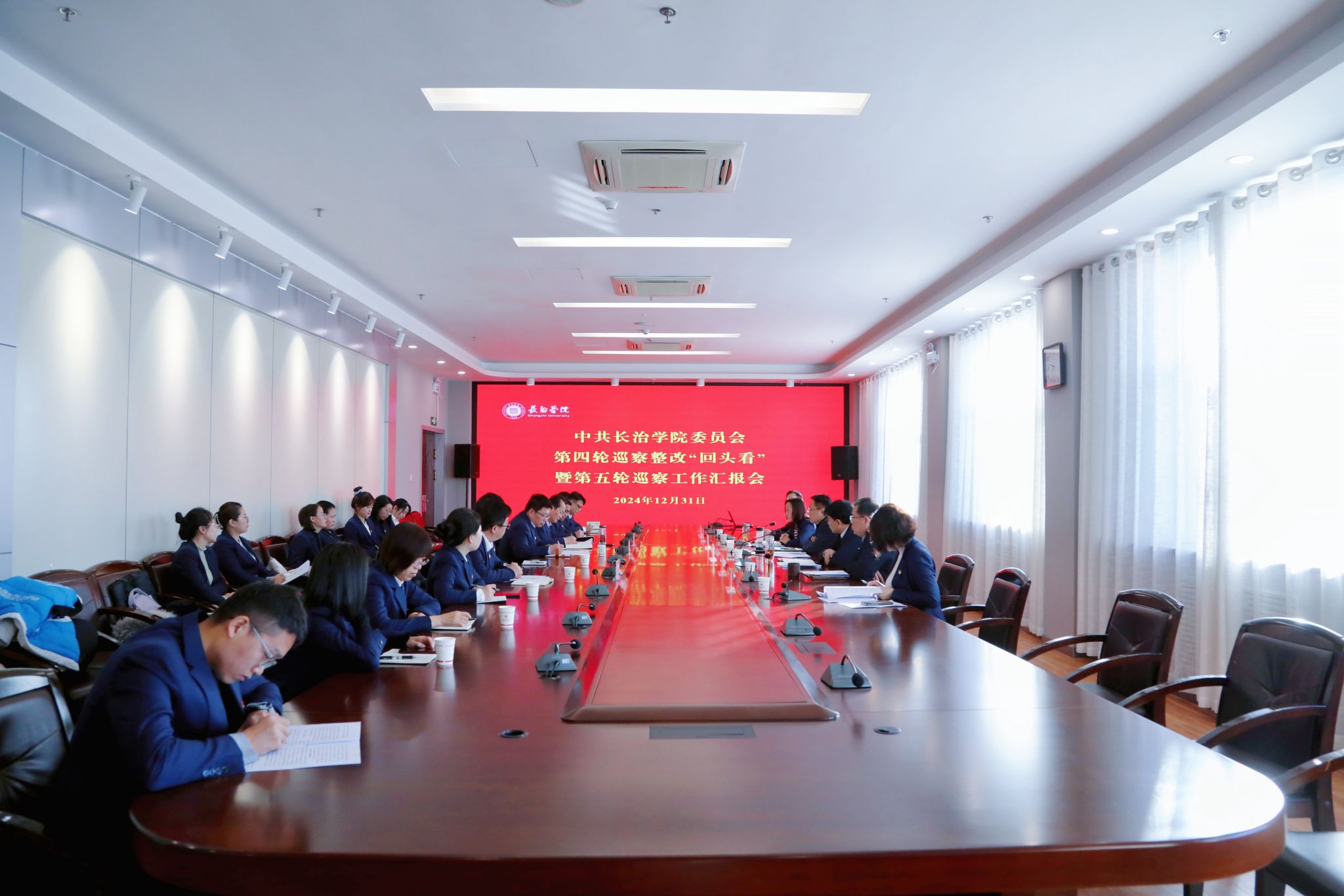 12月31日上午,学校在1号楼2号会议室召开第五轮巡察工作专题汇报会,巡察工作领导小组成员出席,巡察办、巡察组全体成员参加。会议由校党委书记、巡察工作领导小组组长曹景川主持。