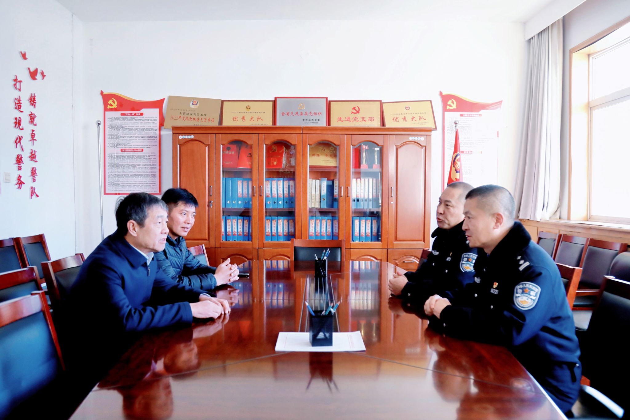 武月明与民警亲切交谈,详细了解他们的生活和工作情况,对他们坚守岗位、辛勤付出表示崇高的敬意,对他们长期以来在警校共建、守护校园安全等方面给予的支持和帮助表示感谢,并为一线民辅警送去了慰问品。