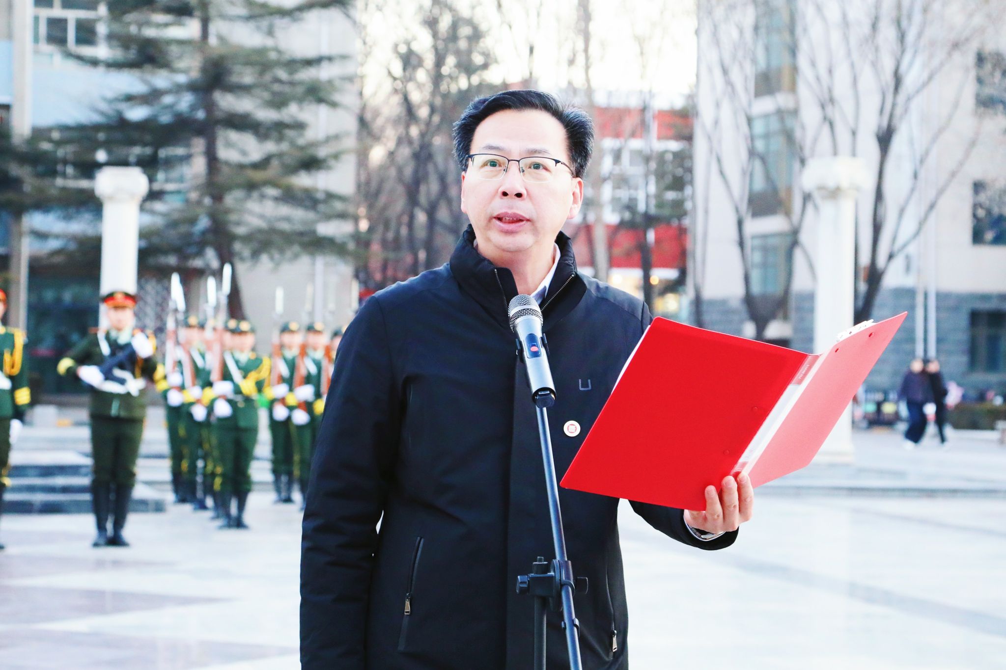律回春晖渐,万象始更新。2月24日清晨,beat3652025年新学期升国旗仪式在北校区思想者广场和南校区文秀广场举行。校领导曹景川、马立峰、史晓东、焦雨、王志军、武月明出席仪式。各职能部门负责人,各院系党委书记、主任、党委副书记、全体辅导员和学生代表参加仪式。