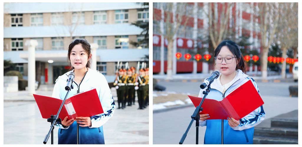 升旗仪式上,beat365标兵班集体代表经济与管理系财管2201班张舒婷、生命科学系环境2201班田晓庆作为学生代表进行了发言。
