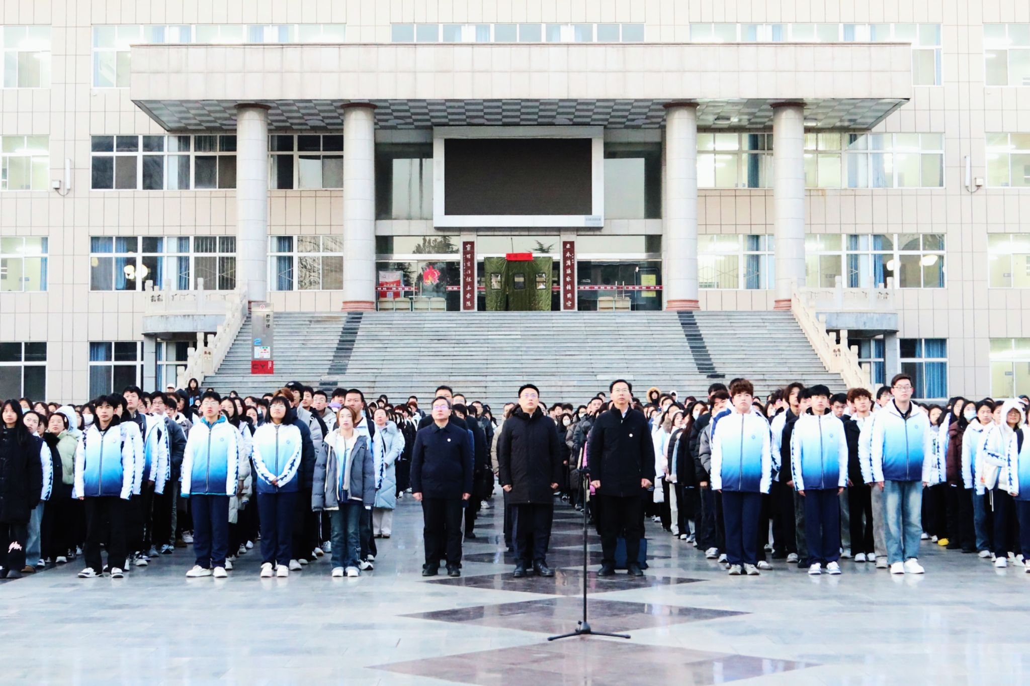 校党委副书记史晓东,党委委员、副校长武月明分别在南北校区讲话。他们代表校领导向全体师生致以新学期的诚挚问候和美好祝愿,并向大家提出殷切期望:一是奋起扬帆,勇于创新。以新时代中国优秀青年为榜样,立志做“有理想、敢担当、能吃苦、肯奋斗”的新时代中国青年。二是奋力博学,增长才干。以学识为帆,以文化为舵,在知识的海洋中破浪前行,积累专业知识,拓宽自身视野,不断提升个人综合素质。三是奋发有为,拼搏向上。继续秉持“求真、求实、求善、求美”的校训精神,拼搏向上,锤炼品格,在奋斗中释放青春激情、追逐青春理想,以青春之我、奋斗之我,为民族复兴铺路架桥,为祖国建设添砖加瓦。