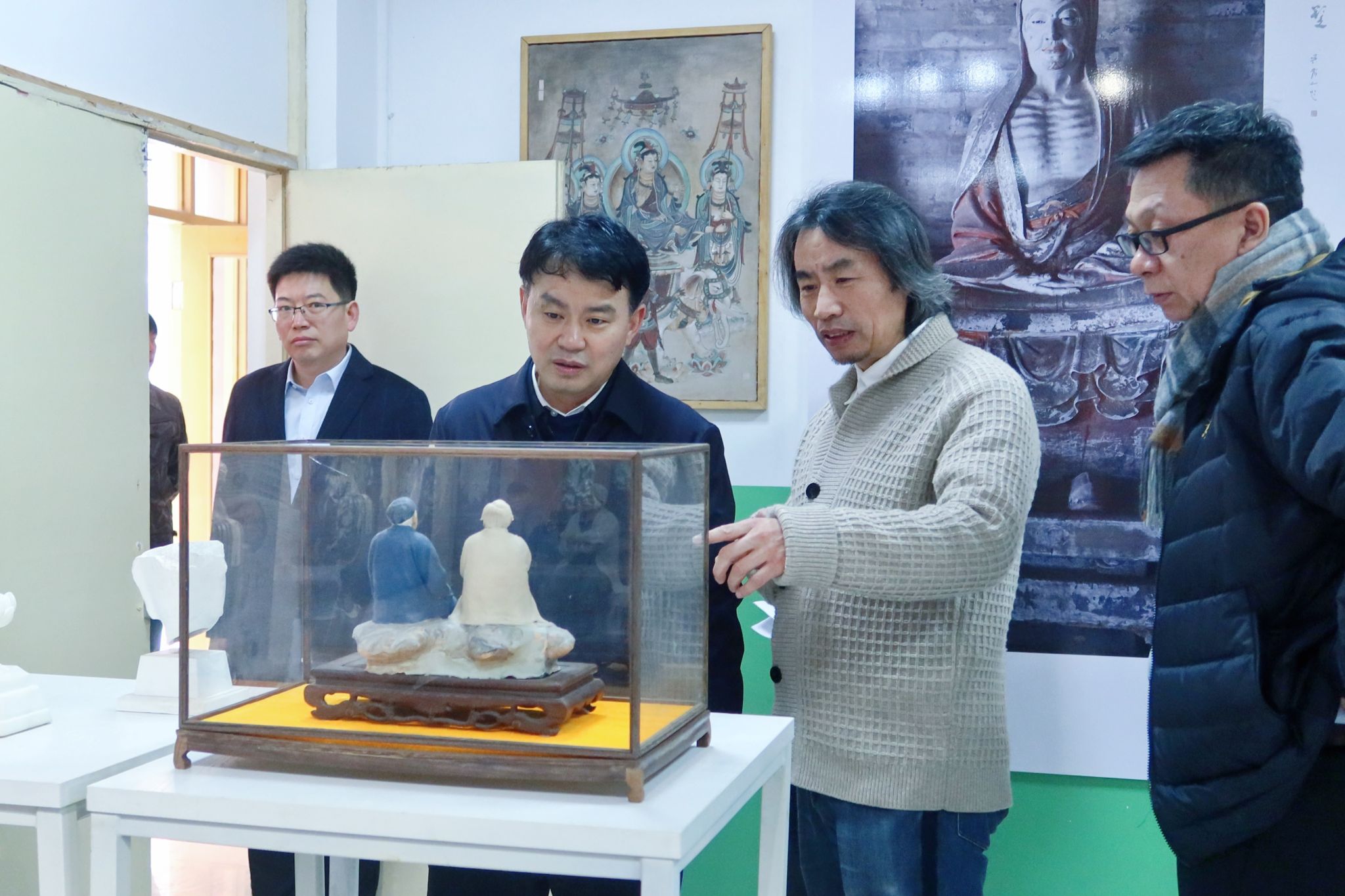 马立峰一行走访了历史与旅游管理系、法律系、经济与管理系、体育系、美术系的实训基地和彩塑壁画研究所。相关单位负责人汇报了近年来在人才培养、专业学科建设、科研平台建设、校企合作交流等方面的发展情况。