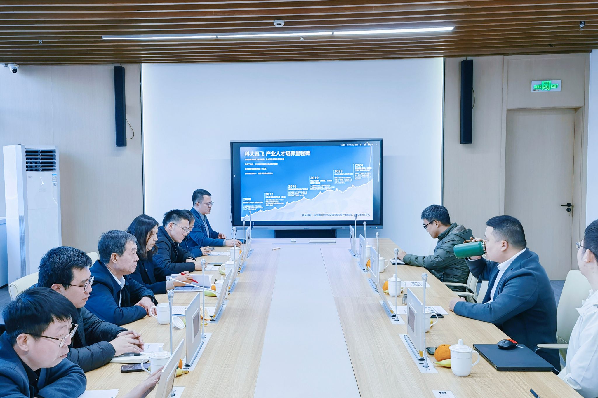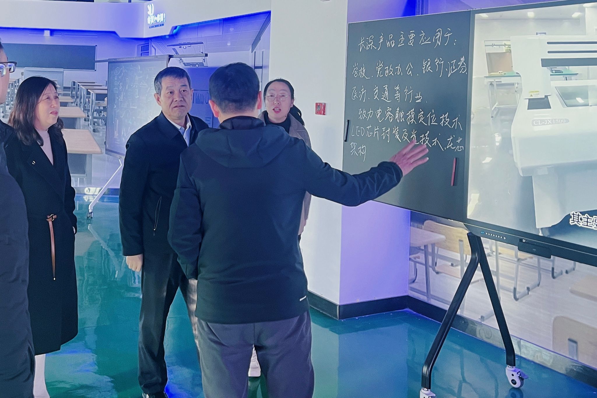 在长治科讯信息科技有限公司,武月明一行参观了科大讯飞人工智能展厅,了解了AI技术在教育、医疗等多个领域的应用情况。座谈会上,武月明介绍了学校的历史沿革和在人才培养、服务地方经济发展及校企合作等方面取得的成果,并希望双方加强沟通交流,发挥各自优势,共同探索更多元化的合作模式,携手开创高质量发展新局面。科大讯飞山西区总经理陈德平介绍了科大讯飞的发展历程和最新研发成果,并表示公司将发挥自身技术优势,与学校共建合作平台,积极为学生提供学习和实践机会,为双方发展注入新的活力。张剑妹就精准对接企业人才需求、共建人工智能实验室、提升人才培养质量、拓宽实习就业渠道等方面进行了交流发言。