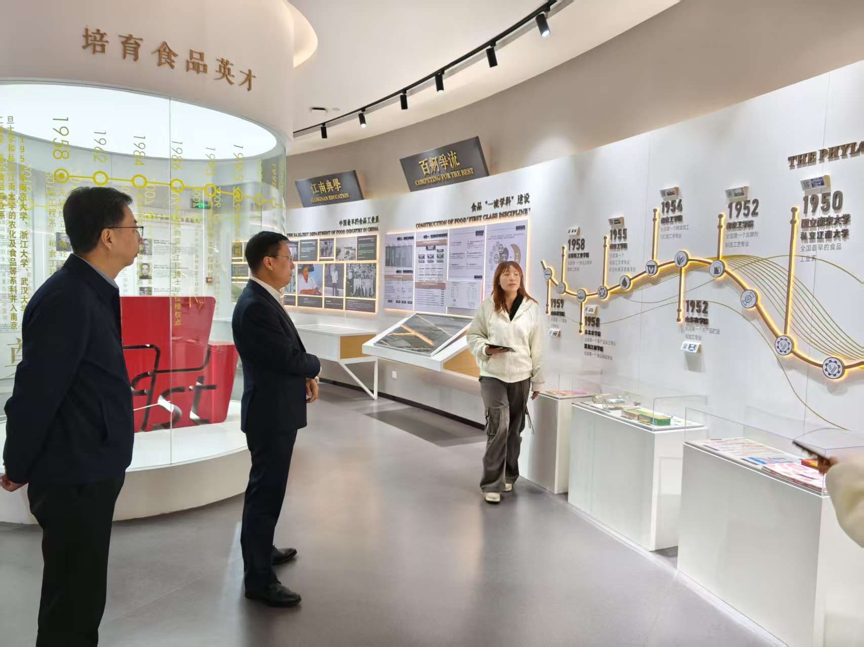 江南大学党委书记吴正国热情会见曹景川一行,双方就党建工作、思政教育、学科建设、人才培养、产教融合、新校区建设等内容进行了深入交流。曹景川一行实地考察了江南大学相关学科国家重点实验室、艺术设计展馆、校友之家、图书馆等场所,充分学习江南大学的好经验、好做法。