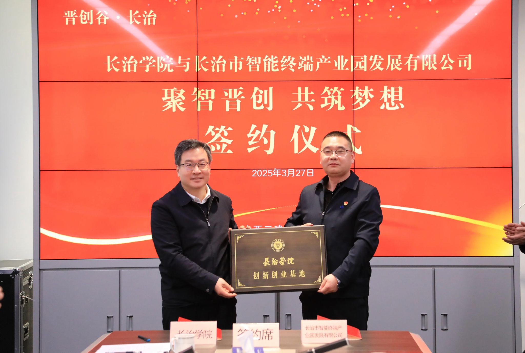 校党委委员、副校长王志军与长治市智能终端产业园发展有限公司董事长郜荣伟签署了校企合作协议。