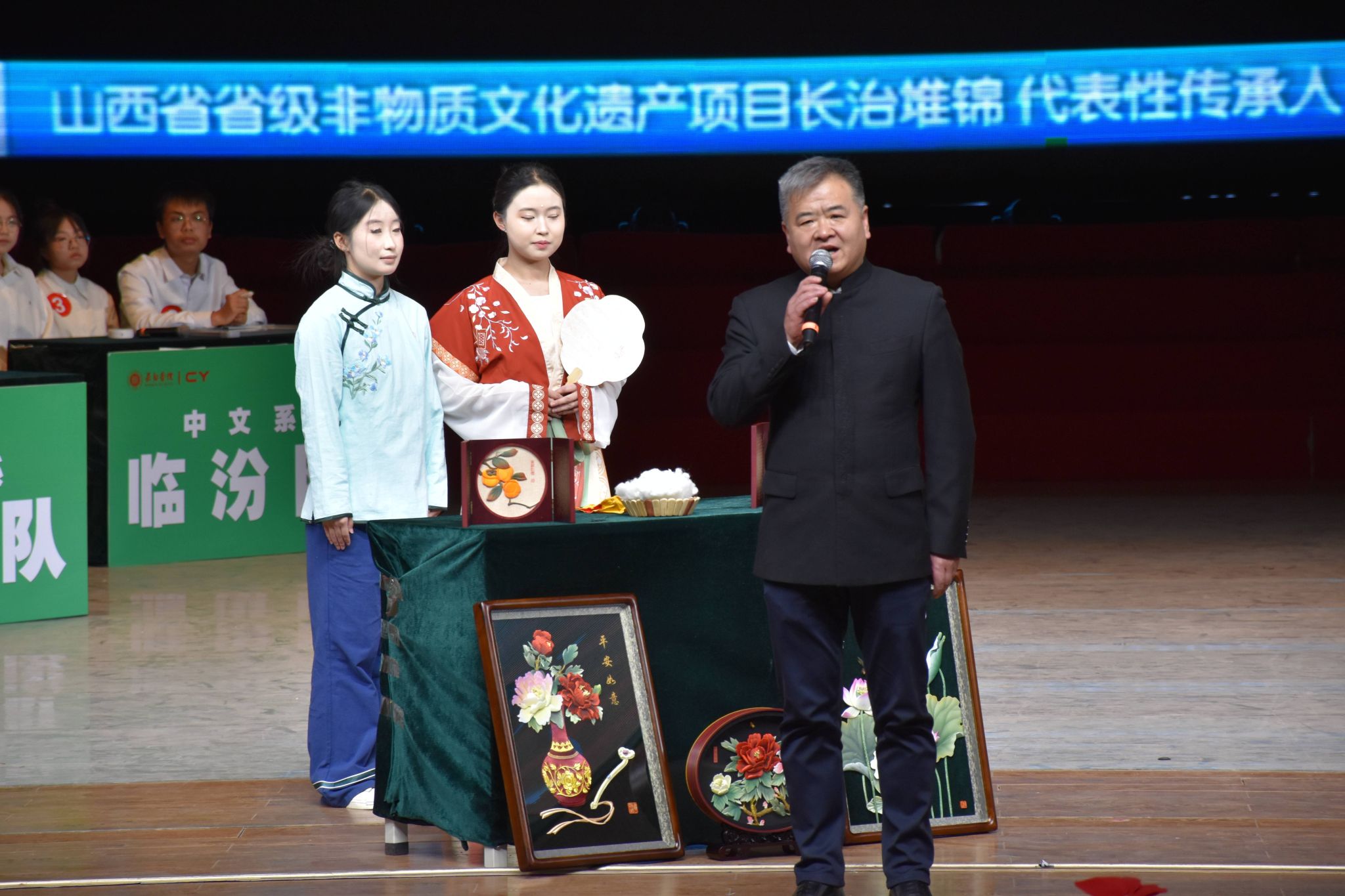 活动期间,山西省省级非物质文化遗产项目长治堆锦代表性传承人、长治堆锦博物馆馆长闫向军,长治市上党梆子剧团副团长、国家二级演员郭栋杰和历史与旅游管理系学子为现场观众带了长治堆锦、上党梆子和黎侯虎的展示与演绎,让非遗以鲜活的姿态走到青年面前、走进青年心中,激发了大学生对中华优秀传统文化的浓厚兴趣。