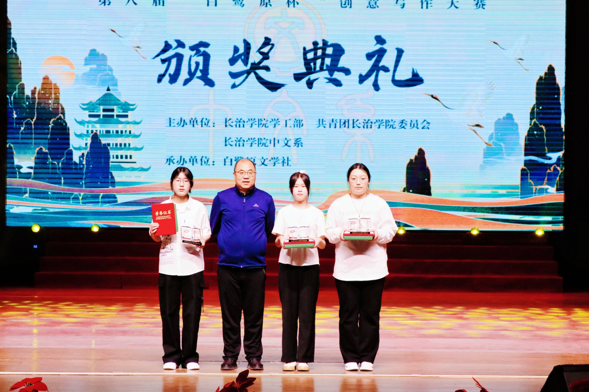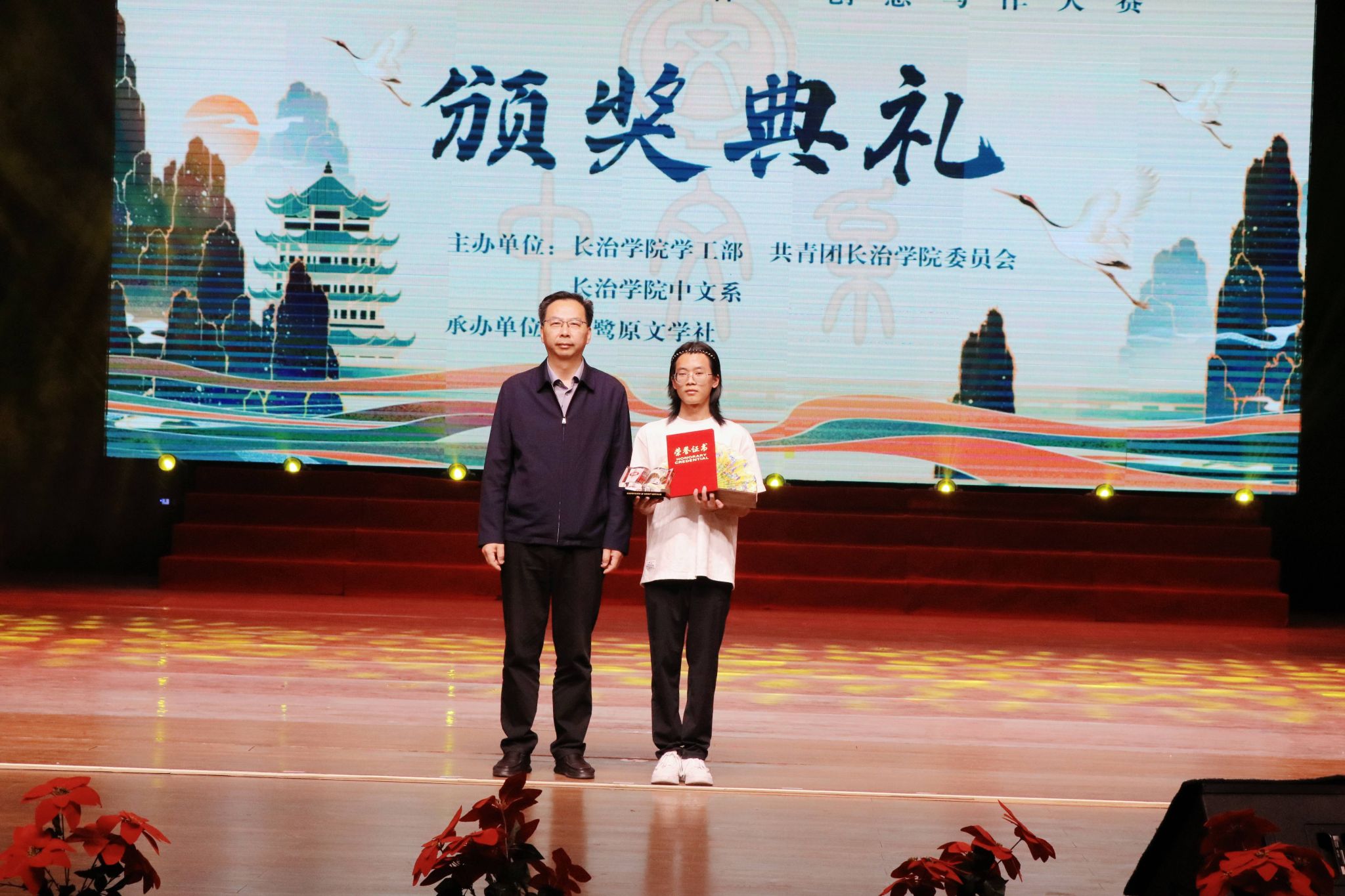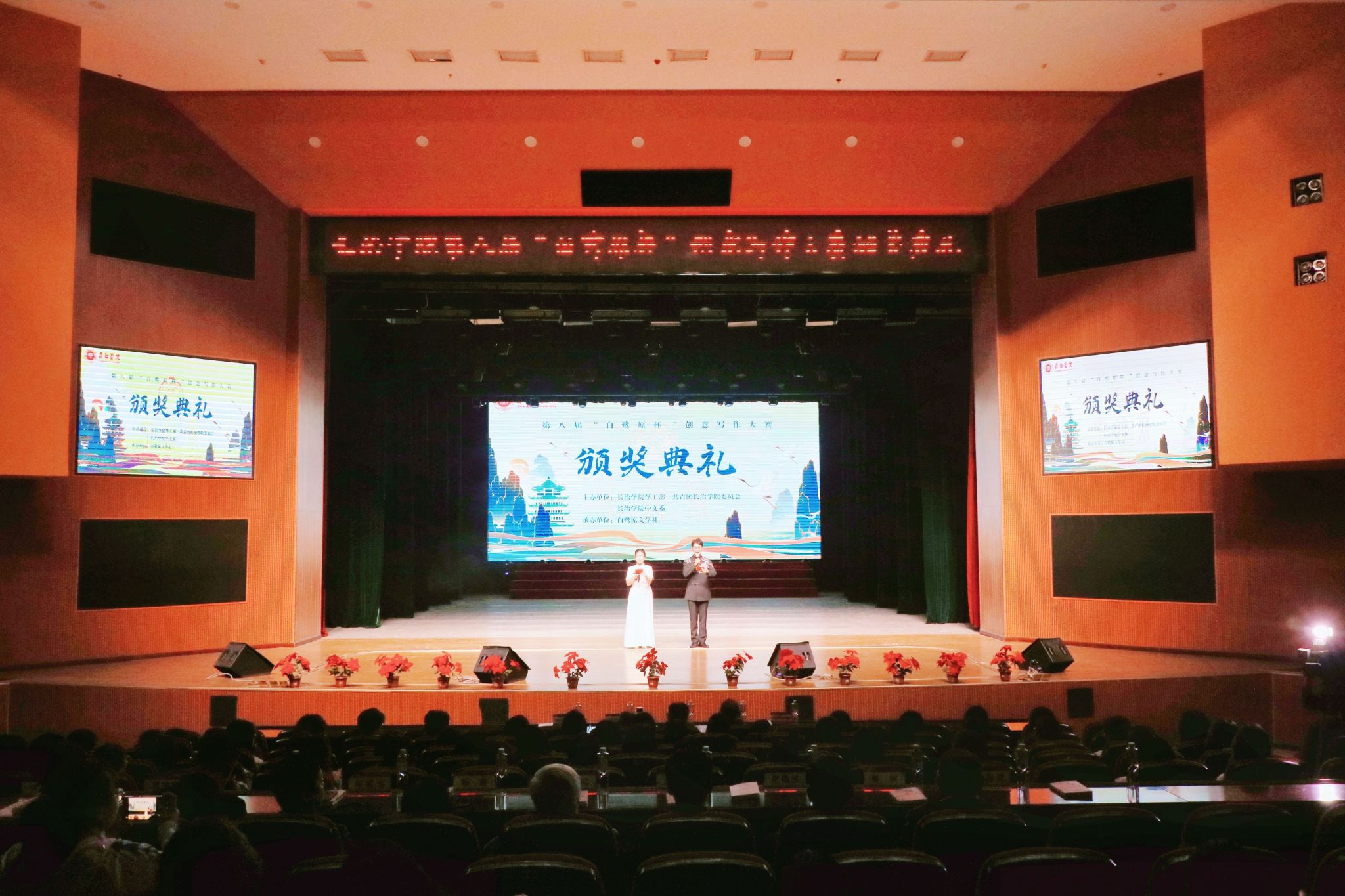 春风拂面,书香盈袖。4月22日下午,beat365第八届“白鹭原杯”文学创作大赛颁奖典礼在实验剧场举行。校党委副书记史晓东,长治市作家协会主席郭俊明,长治市作家协会副主席赵伟平出席,校党委宣传部、学生工作部、团委、中文系负责人、长治电视台、长治市教育电视台等媒体以及师生代表参加。