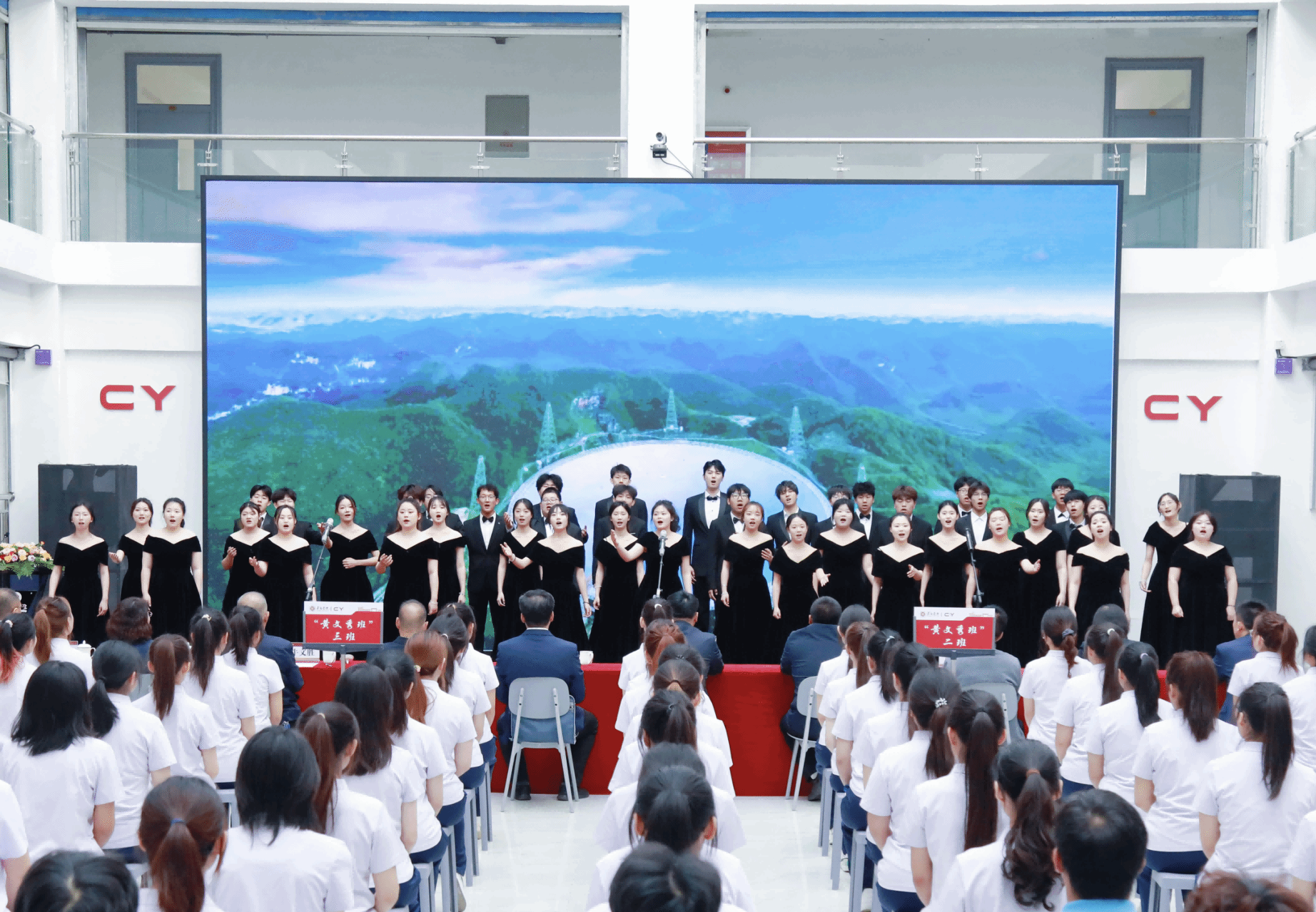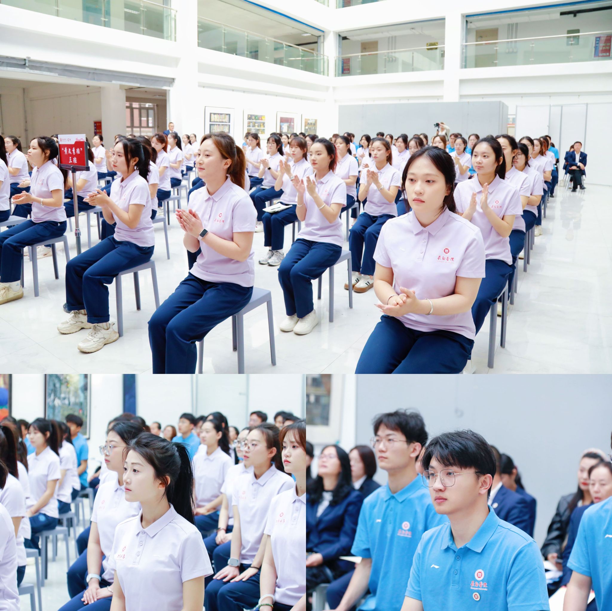 “我是长院青年,我志愿加入‘黄文秀班’,接续文心秀行、传承榜样力量,把小我融入祖国大我,扎根基层、服务社会、奉献人民,让青春之花绽放在党和人民最需要的地方!”在黄文秀班班主任代表田东婷领誓下,全体学员庄严宣誓。启动仪式环节在音乐舞蹈系爱乐合唱团《有我》的激昂旋律中走向高潮,“我的样子就是中国的模样”铿锵旋律在大厅回响,展现青春与时代的双向奔赴。