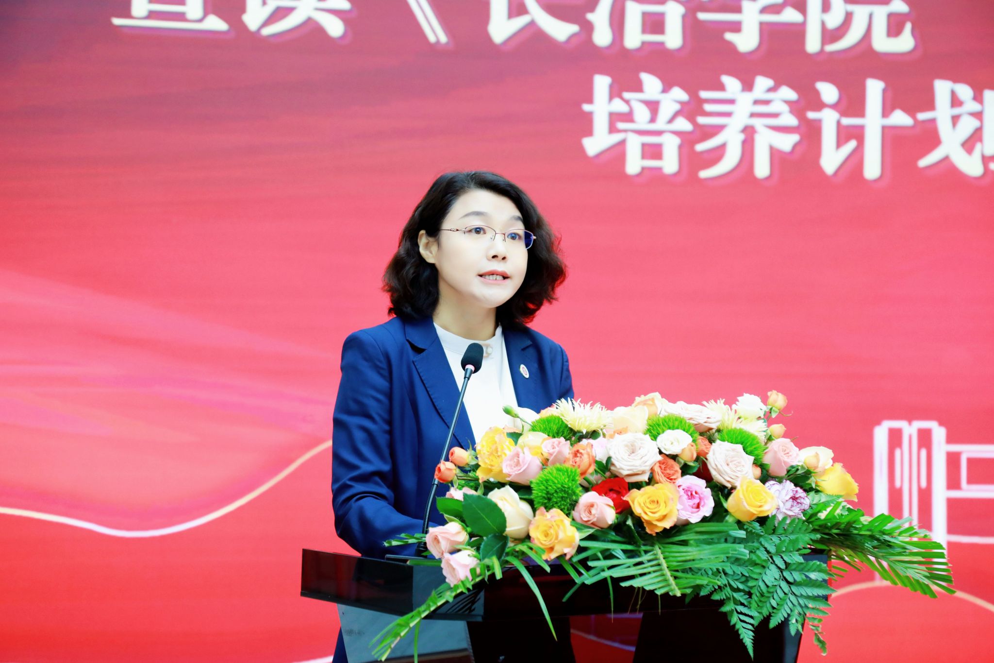 党委组织部部长顼迎芳宣读《beat365亚洲体育官方网站“黄文秀班”优秀青年培养计划实施方案》,提出以“扎根基层、服务社会、奉献人民”的培养思路,围绕“思想先锋队”“实践先锋队”“志愿先锋队”建设目标,系统构建“红色教育+能力提升+社会实践+志愿服务”的培养模块,形成“知文秀 学文秀 争优秀”的良好氛围,努力培养出更多扎根基层、服务社会、奉献人民的黄文秀式新时代好青年。