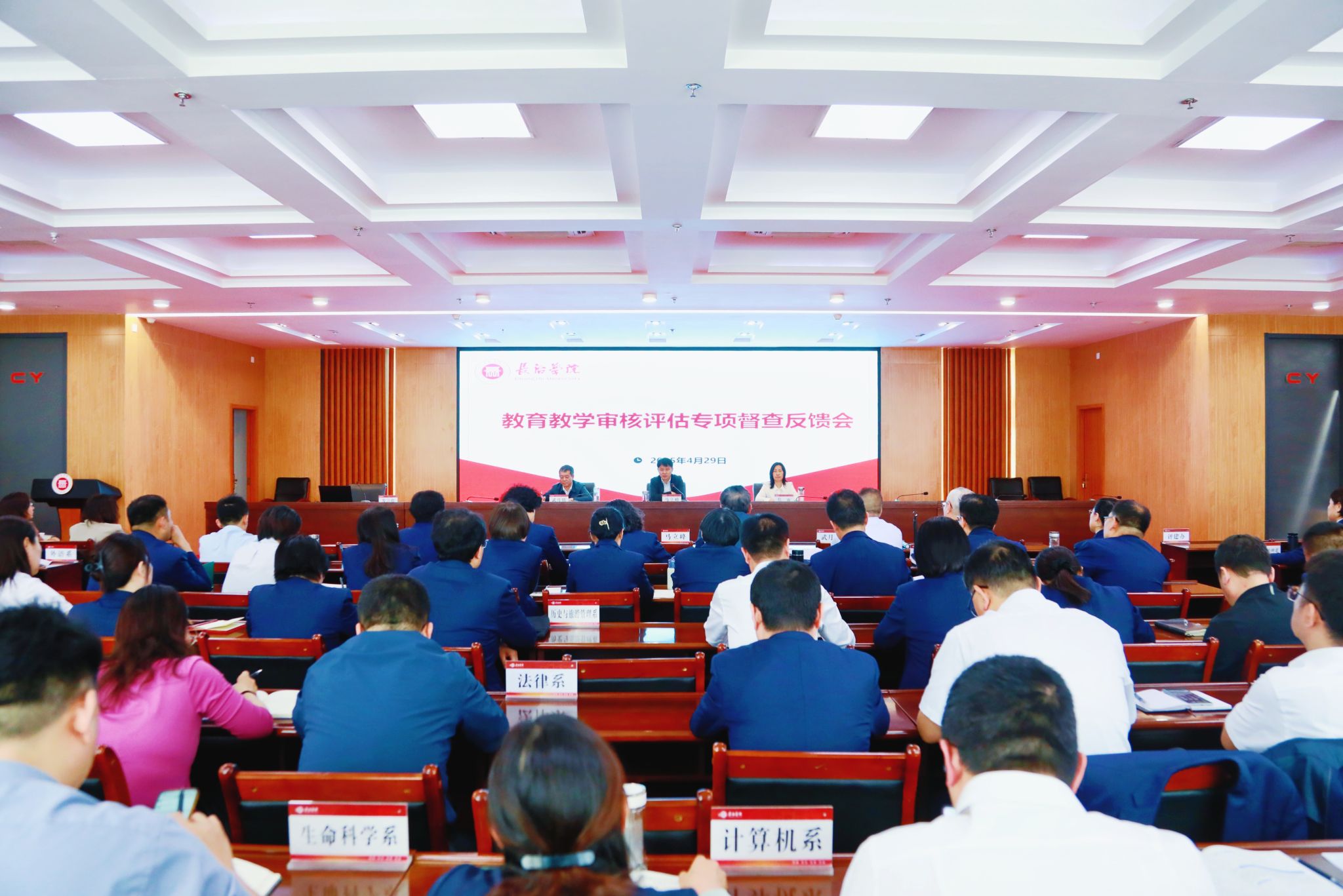 4月29日下午,beat365在北校区1号楼1号会议室召开教育教学审核评估专项督导检查反馈会。校党委副书记、校长马立峰,党委委员、纪委书记、监察专员焦雨,党委委员、副校长武月明出席。相关职能部门负责人、各院系领导班子成员、督导组成员、评建办工作人员参加会议。武月明主持反馈会。