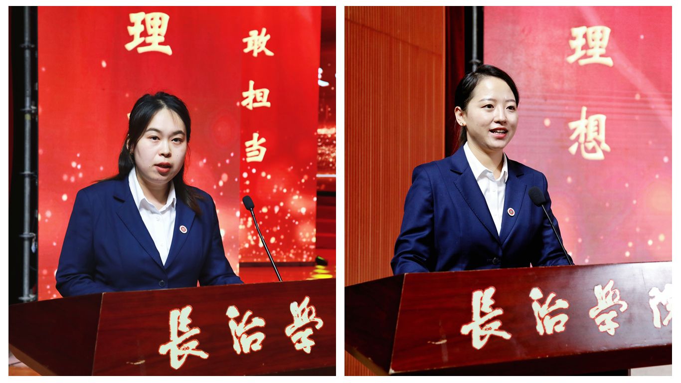 优秀共青团干部代表、历史与旅游管理系团委书记姚瑶,优秀学生社团指导教师代表、马克思主义学院模拟联合国协会指导教师焦竹新,优秀学生分会代表、生命科学系学生会执行主席杨佳霖,优秀共青团员代表、“山西省优秀共青团员”获得者、物理系物理2101班刘靓,十佳理论宣讲员代表、音乐舞蹈系舞蹈2202班时好分别作交流发言。