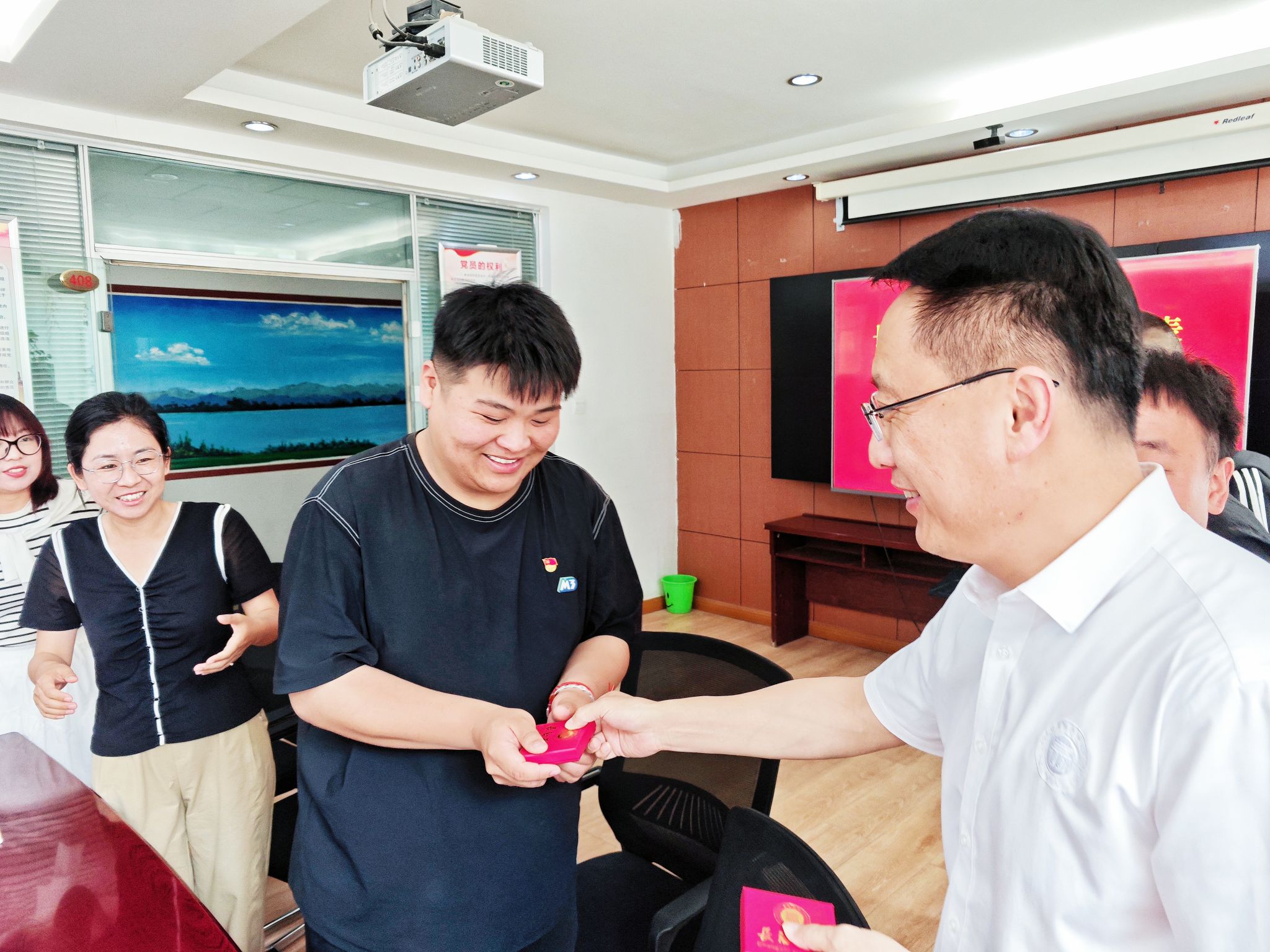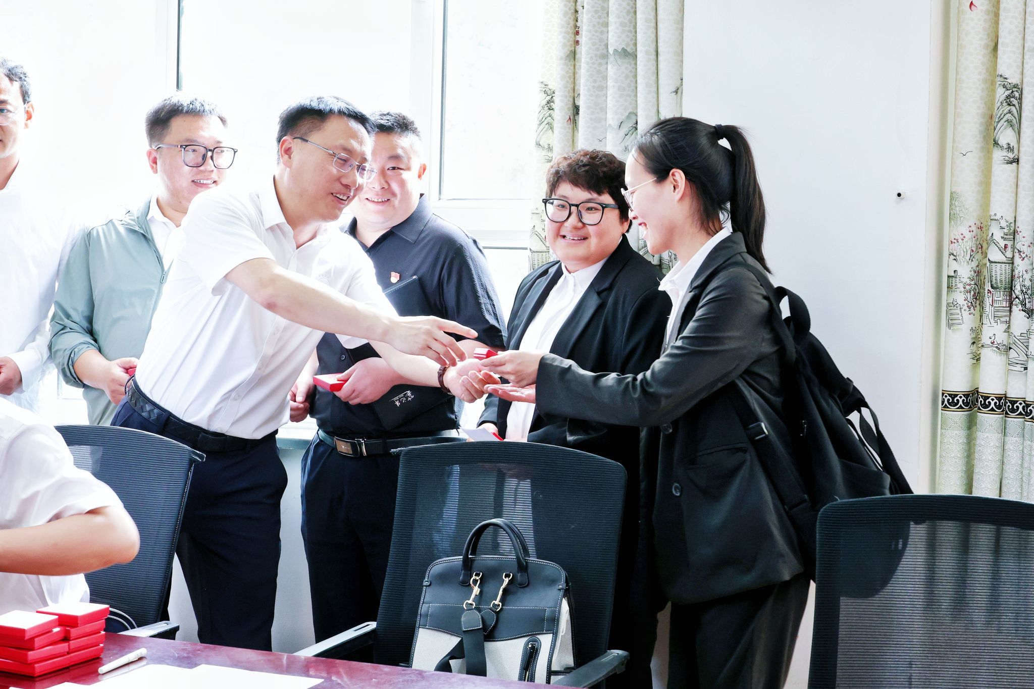曹景川一行向毕业生代表赠送beat365亚洲体育官方网站校徽