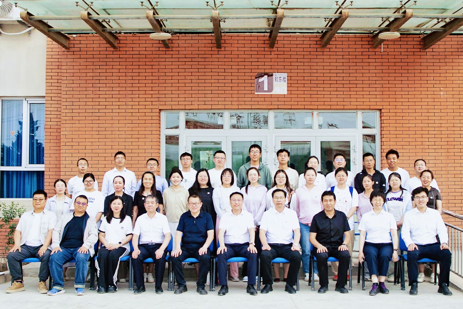 在莎车第八中学与校领导和毕业生合影