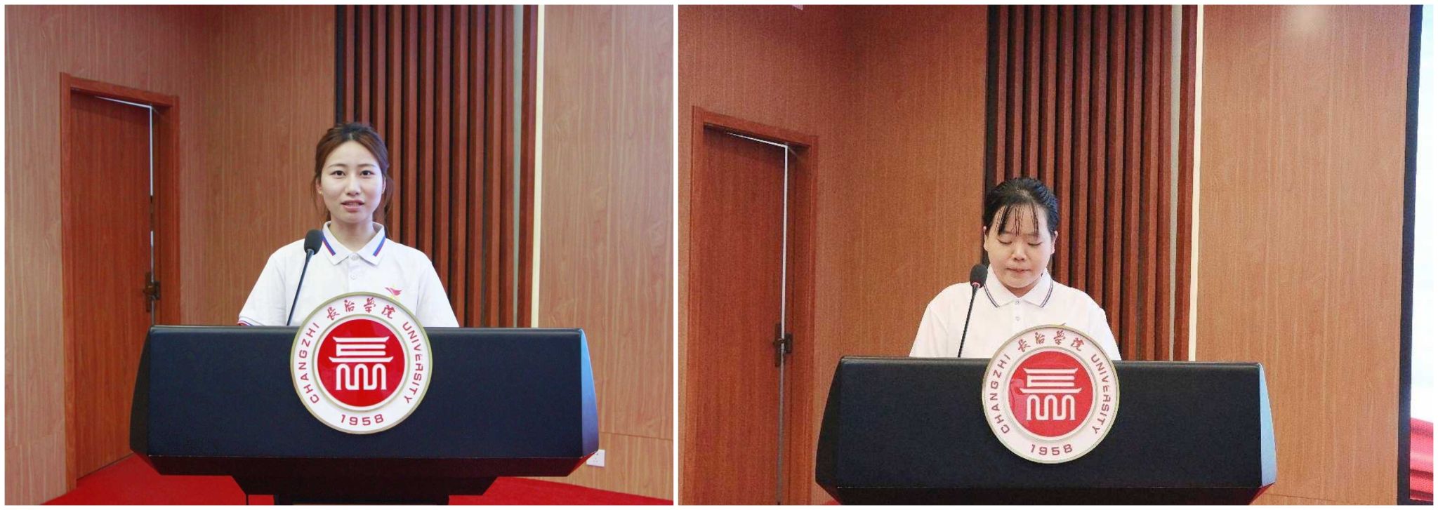 2024年优秀青马学员代表、数学系数学2202班杨晨瑜分享了自己在青马培训中的感悟。2025年“青马工程”学员代表、化学系化学2302班雷媛媛进行了表态发言。全体青马学员进行了集体宣誓。