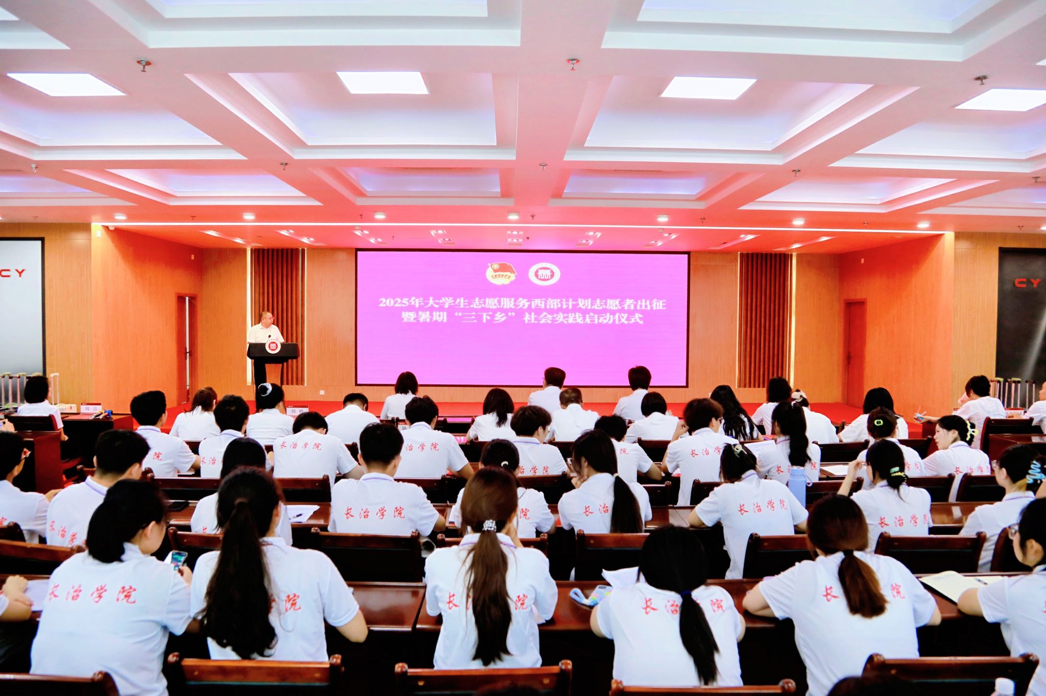 会上介绍了beat3652025年大学生志愿服务西部计划进展及暑期“三下乡”社会实践筹备情况。现场师生共同观看了来自往届西部计划志愿者们的云寄语视频。