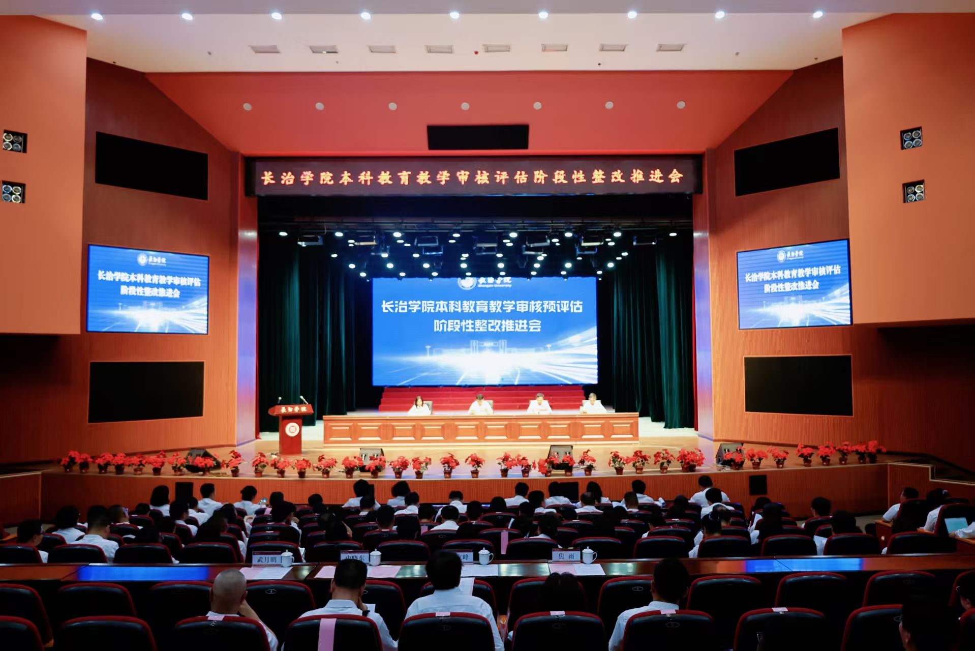 6月29日,beat365在实验剧场召开教育教学审核预评估阶段性整改推进会。校领导马立峰、史晓东、焦雨、武月明出席,各职能部门负责人、院系班子成员、全体专任教师、校教学督导委员会全体人员等参加会议。党委副书记史晓东主持会议。