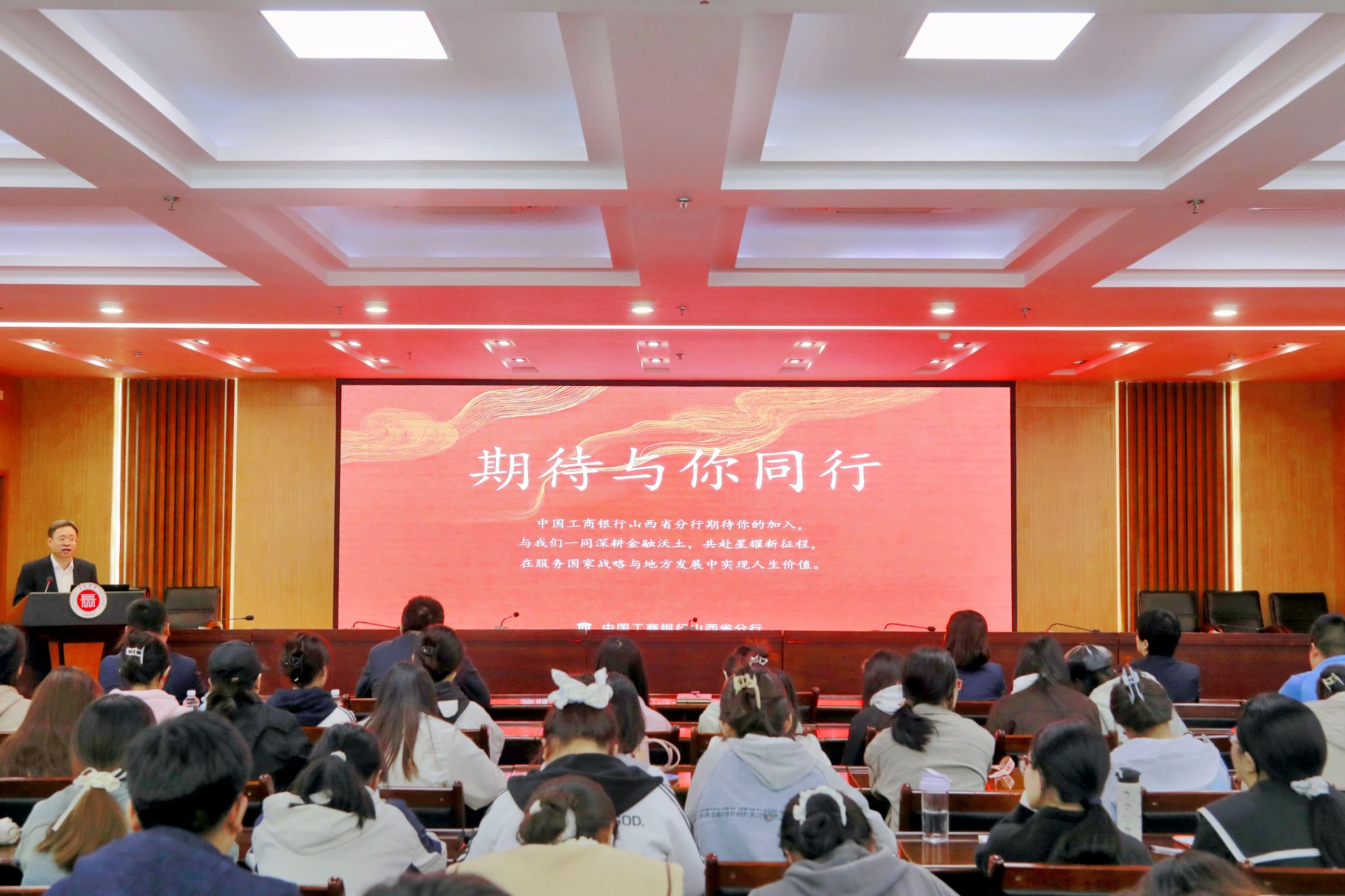 在校友分享环节,2011届校友、长治分行南街支行副行长张龙以“以青春之名,赴工行之约”为题,讲述了自己从校园走向职场、在工行不断成长的经历,分享了岗位坚守与职业突破的心得体会。2018届校友、长治分行潞城支行行长助理李德则结合一线工作实践,强调了扎根基层、积累客户资源和实战经验对职业发展的重要意义。