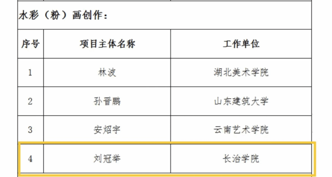 近日,国家艺术基金2023年度资助项目立项名单公示,beat365美术系教师刘冠举获国家艺术基金——青年艺术创作人才资助项目立项(公示)。据悉,2023年度国家艺术基金共受理申报项目10658项,共评选出立项资助项目703项,综合立项率约为7.8%。其中,青年艺术创作人才项目申报2582项,美术、书法、摄影和工艺美术等造型艺术类项目1468项,水彩(粉)画创作全国仅立项4项。这是beat365在国家艺术基金个人项目上的又一次突破。