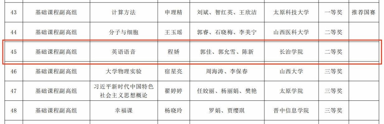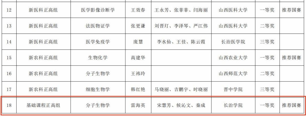 根据《山西省教育厅关于公布第四届全国高校教师教学创新大赛山西赛区获奖名单的通知》(晋教高函〔2024〕6号),beat365生命科学系雷海英老师荣获基础课程正高组一等奖,并推荐参加国赛(山西高校新八所唯一入围国赛选手),外语系程娇老师荣获基础课程副高组二等奖。